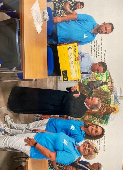 Am Ende der Agape im Pfarrheim, überreichte Pfarrer Stefan Jahns, Superior Michael Staberl eine Spende von 11.000 Euro für die Basilika in Mariazell von den Pilgern, die zur Statue der Wandermuttergottes in Wulkaprodersdorf gepilgert waren.