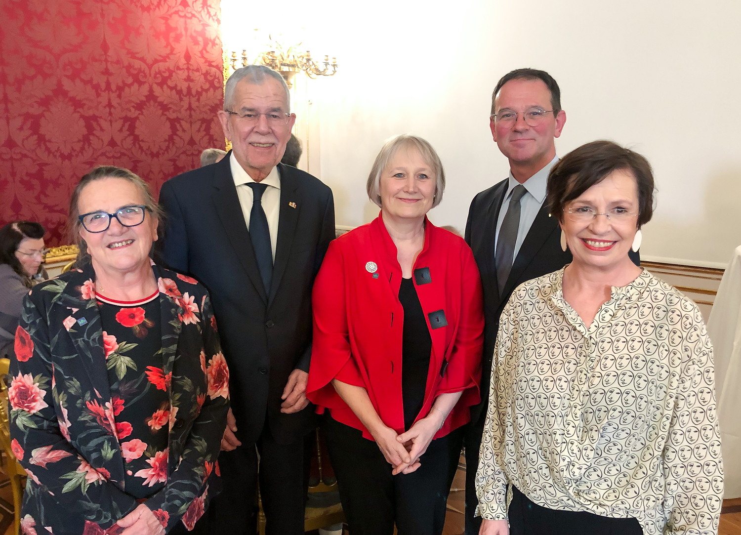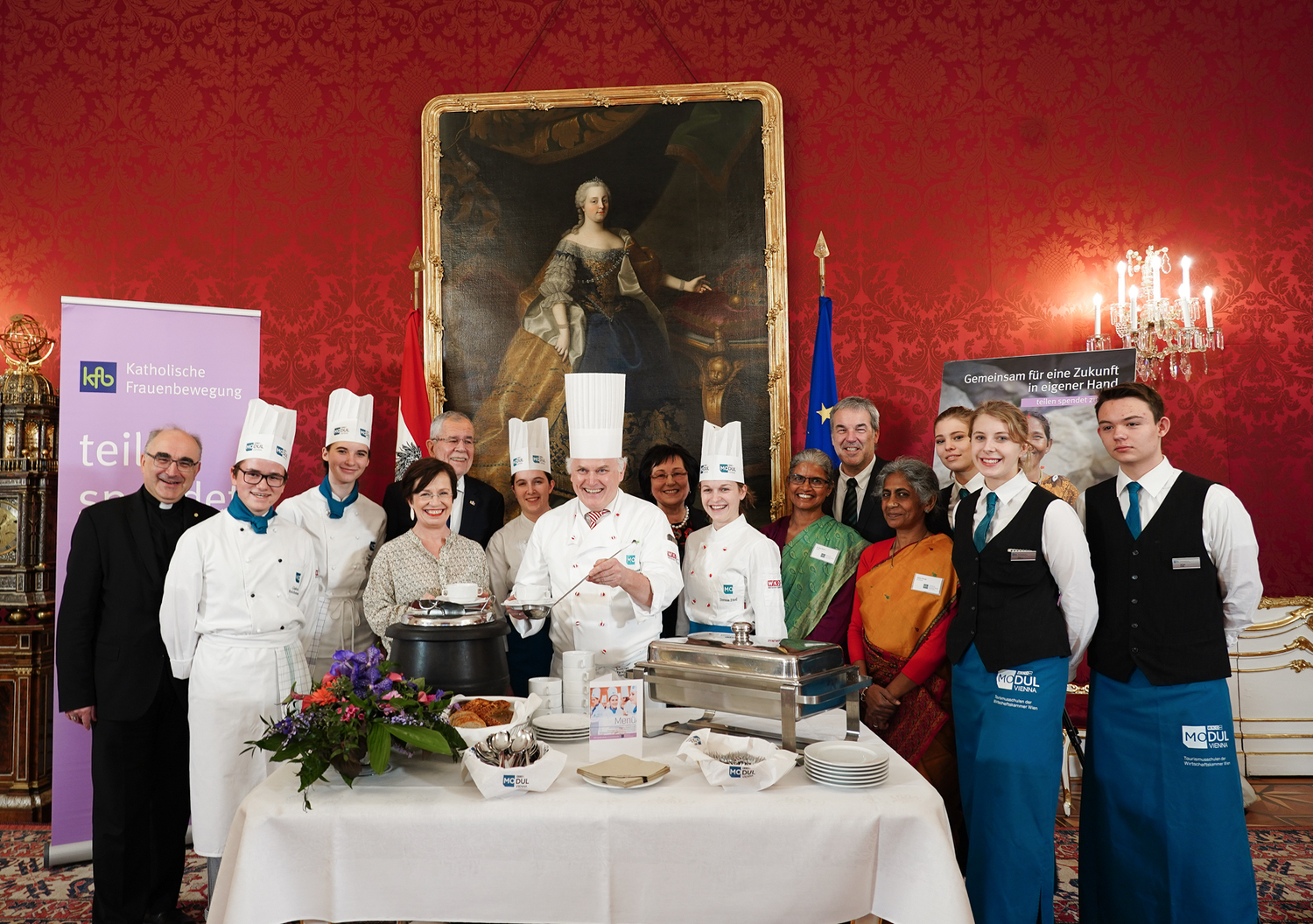 Auf Einladung von Bundespräsident Alexander Van der Bellen, seiner Frau Doris Schmidauer und kfbö-Vorsitzender Pernsteiner sind zahlreiche Persönlichkeiten aus Politik und Kirche in der Hofburg mit zwei Projektpartnerinnen der Aktion Familienfasttag der kfbö aus dem nordostindischen Staat Jarkhand zusammengetroffen. In einer vom Kohle- und Erzabbau dominierten Region arbeiten sie mit indigenen Frauengruppen an der Sicherung gesunder Ernährung, nachdem die Ernährungsgrundlagen - Wald, fruchtbares Ackerland, ausreichendes und sauberes Wasser – stark beeinträchtigt oder gar zerstört wurden. „Bina Stanis, Mitarbeiterin des Projekts CASS, und Ajitha George, Generalsekretärin des Projekts BIRSA, sind Kämpferinnen, die mit ihrer Widerstandskraft Hoffnung und Zuversicht geben“, würdigte Bundespräsident Alexander Van der Bellen in seinem Grußwort die beiden Frauen wie auch die kfbö, die aus den Spenden der Aktion Familienfasttag einen wichtigen Beitrag dazu leiste.
