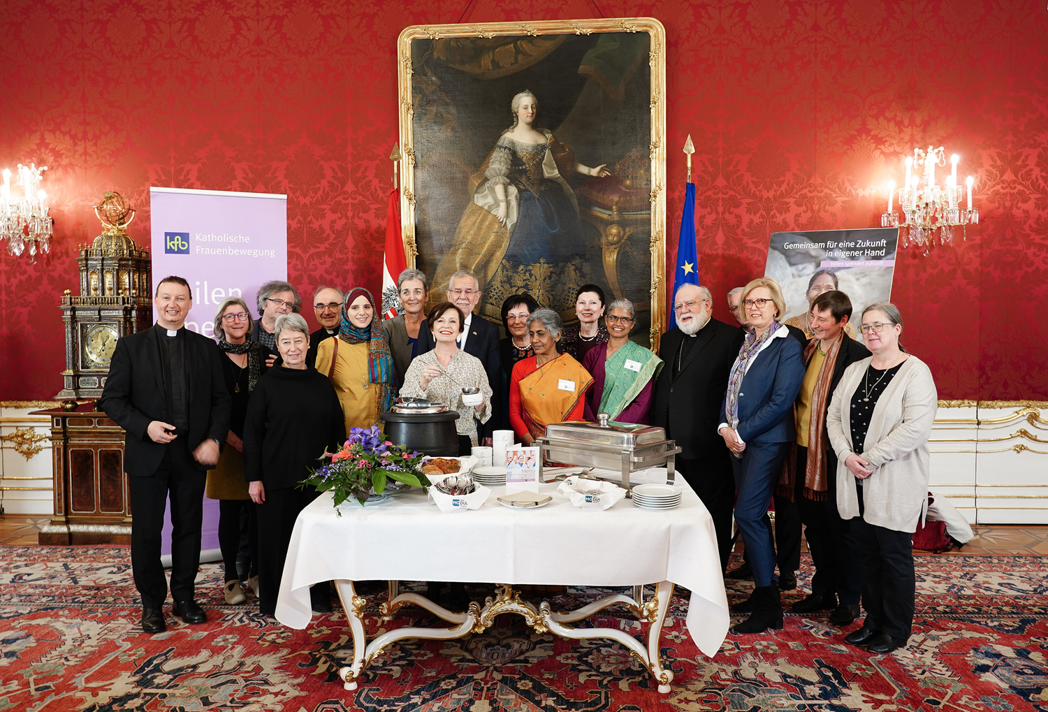 Unsere Vorsitzende der Katholischen Frauenbewegung Roselinde Strommer und die Leiterin des Arbeitskreises Familienfasttag Christine Wendelin waren am Montag, 2. März 2020 beim Benefizsuppenessen der Katholischen Frauenbewegung Österreichs auf Einladung von Bundespräsident Alexander van der Bellen und seiner Frau Doris Schmidauer in der Hofburg.