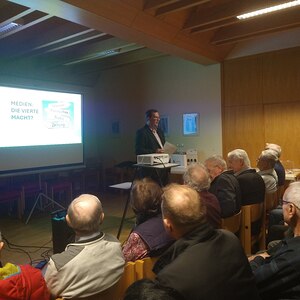 In seinem Vortrag nahm Reiss die Gäste mit auf einen kritischen Blick hinter die Kulissen der modernen Medienlandschaft – von Zeitungen über Radio und Fernsehen bis hin zum Internet. Er ging dabei Fragen nach wie: Wie unabhängig sind Journalist:innen wirklich? und Wie verlässlich ist die sogenannte „vierte Gewalt“ in der Demokratie? Darüber hinaus gab er wertvolle Tipps zum bewussten Umgang mit der täglichen Nachrichtenflut.