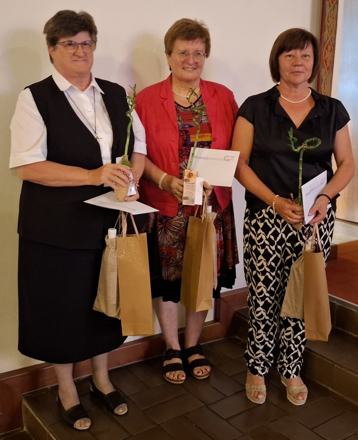Aus dem Kreis der Religionslehrer:innen wurde auch drei Personen herzlich für ihre Arbeit gedankt, nachdem sie im abgelaufenen Schuljahr in Pension gegangen sind: Aus dem höhenden Schulbereich Sr. Maria Zeitler und Ingrid Unger, aus dem Pflichtschulbereich Region Mitte Christine Loibl.
