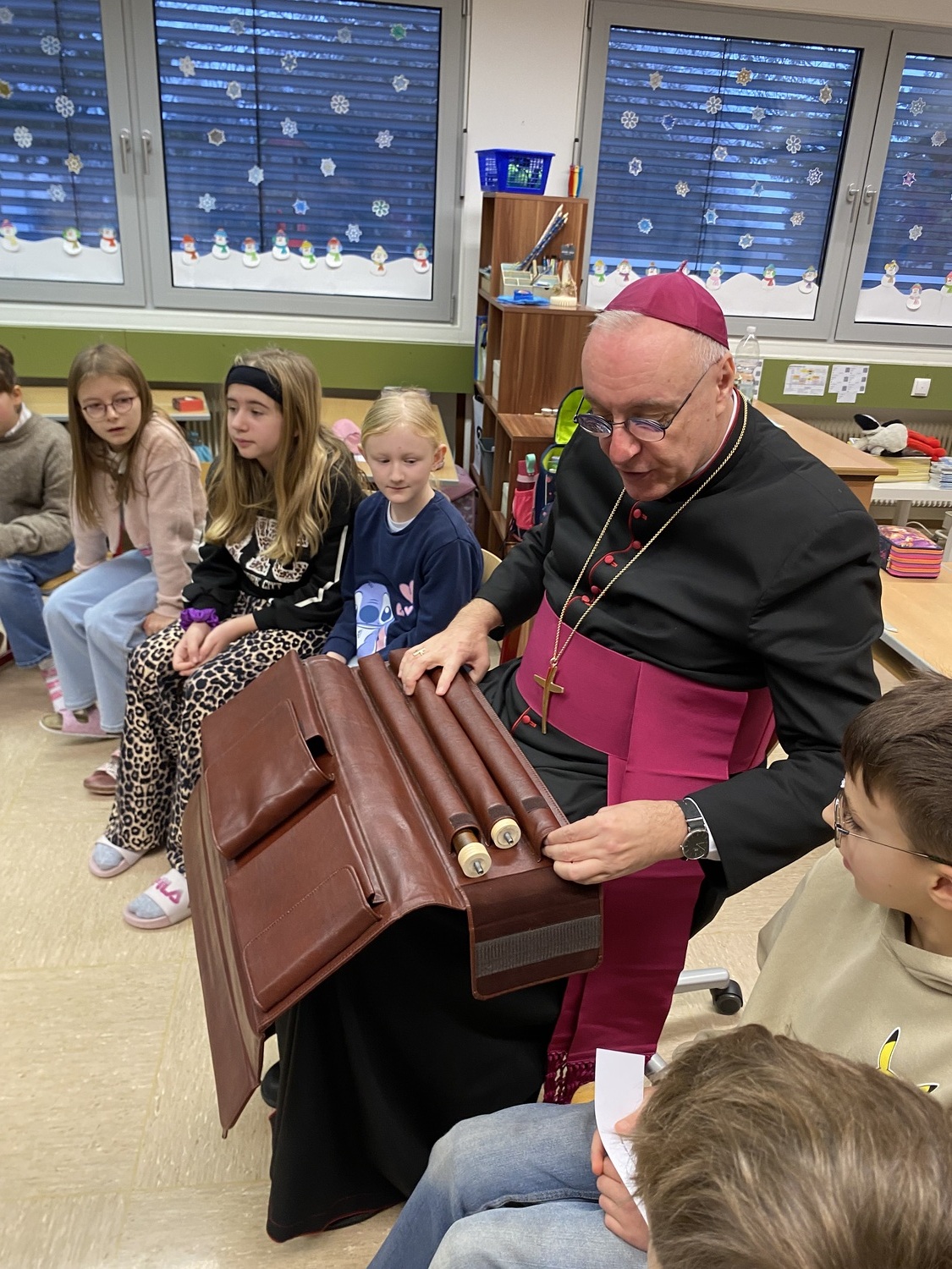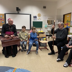 Nach einer stimmungsvollen gemeinsamen Adventandacht im Turnsaal, die von Religionslehrerin Maria Wiesinger zum Thema „Licht im Advent“ gestaltet wurde, nahm sich der Herr Bischof Zeit für den Besuch von drei Klassen. Die mitgebrachte Mitra und der besondere Bischofsstab des Herrn Diözesanbischofs weckten großes Interesse bei den neugierigen Schüler:innen. Besonders beeindruckt zeigte sich der Herr Bischof von einer Mehrstufenklasse, in der Schülerinnen und Schüler aller vier Schulstufen engagiert Fragen stellten und miteinander ins Gespräch kamen. Ein kulinarisches Beisammensein mit dem Kollegium bot anschließend Gelegenheit zum persönlichen Austausch.