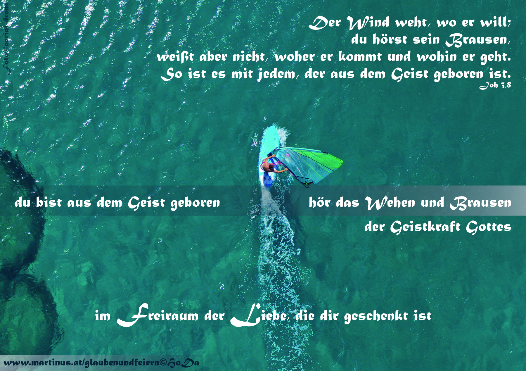 Der Wind weht, wo er will; du hörst sein Brausen, weißt aber nicht, woher er kommt und wohin er geht. So ist es mit jedem, der aus dem Geist geboren ist.