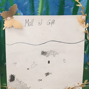 Die verschiedenen Interpretationen und Wahrnehmungen finden sich in Bildern und Worten auf einem großen Bild einer Blumenwiese wieder und werden durch einen goldenen Blütenfaden verbunden – goldene Schmetterlinge sind Zeichen für die Hoffnung auf WANDEL.