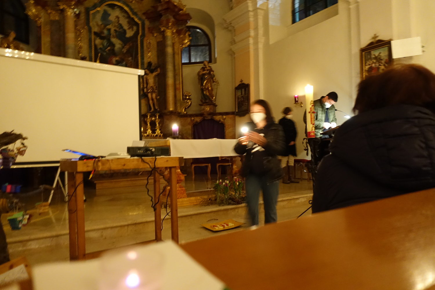 Pöttsching / Firmvorbereitung: Dieses Hungertuch ist eigentlich ein Leintuch. Ein Leintuch aus einem Krankenhaus. Dieses Tuch hat die chilenische Künstlerin Lilian Moreno Sánchez gemacht. Sie hat einen Fuß, besser gesagt das Röntgenbild eines Fußes dargestellt.