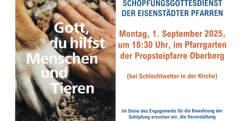 Schöpfungsverantwortung ist ein breitgefächertes Gebiet mit vielen Facetten. „Gott, du hilfst Menschen und Tieren“ – so das diesjährige Motto zum Ökumenischen Tag der Schöpfung, unter dem wir diesmal den Blick ganz besonders auf die Tiere richteten. Dem entsprechend wurde auch die Kollekte für den Sonnenhof, ein Tierschutzhaus (zwischen Eisenstadt und Siegendorf) mit wirksamer und nachhaltiger Tierschutzarbeit gespendet.