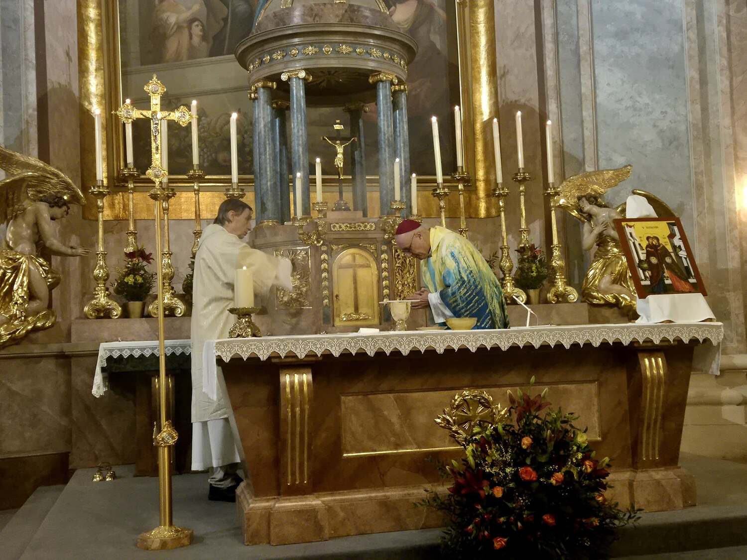Kerzen drücken Hoffnung aus – die Hoffnung, nicht allein zu sein, auch nicht in der Dunkelheit des Todes. Sie sind immer am Altar zu finden – außer am Karfreitag. Brennende Kerzen symbolisieren: Gott ist da. Gottes Gegenwart ist unter uns. Besonders eindringlich war der Hinweis auf unsere erste Kerze – die Taufkerze. Sie begleitet uns ein Leben lang und erinnert an unser Taufversprechen. Der Bischof nannte sie eine „Provokation“ mit der Frage: