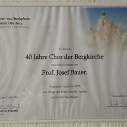 Am 11. September 2016 feierte der CHOR der BERGKIRCHE sein 40 jähriges Bestehen. Die Festmesse wurde mit der MARIAZELLERMESSE von J. Haydn musikalisch umrahmt.