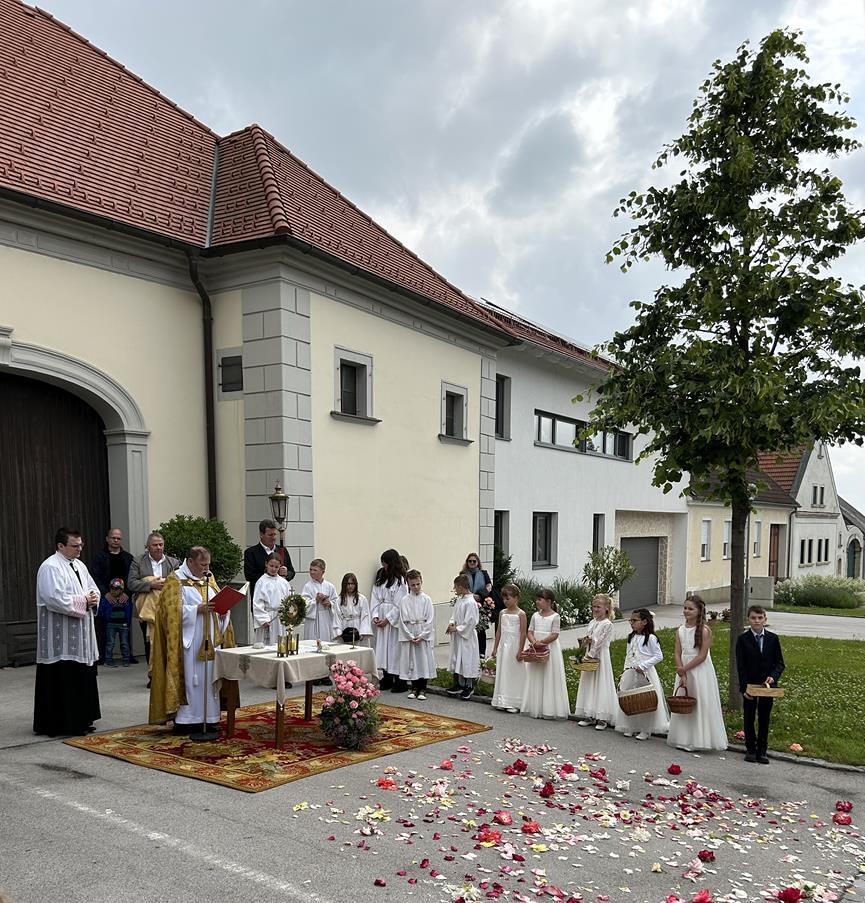 Trotz Regenvorhersage waren wir optimistisch die Prozessin zu riskieren und nicht abzusagen. Besonders beeindruckend war das Spalier des MV Winzerkapelle Kleinhöflein und der Feuerwehr Kleinhöflein bei der Rückkehr zur Kirche zu den Klängen des "Te Deum"...