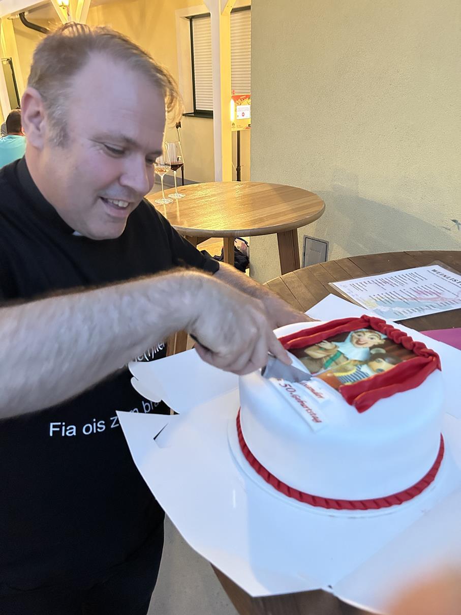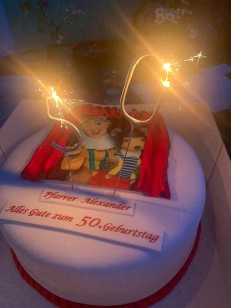 Man gratuliert zwar nicht im vorhin, aber bei einem besonderen Geburtstag fängt man früher an und hört später auf. Deshalb nutzten wir diesen herrlichen Rahmen des Pfarrfestes, um unserem Pfarrmoderator Alexander Wessely zu seinem anstehenden 50. Geburtstag zu gratulieren (ah „30.“ wie er sagt ;-))