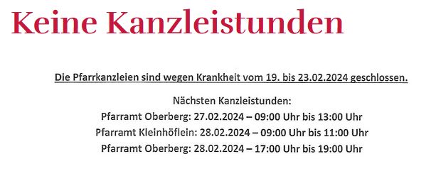 Kanzlei wegen Krankheit bis 28.2.2024 geschlossen