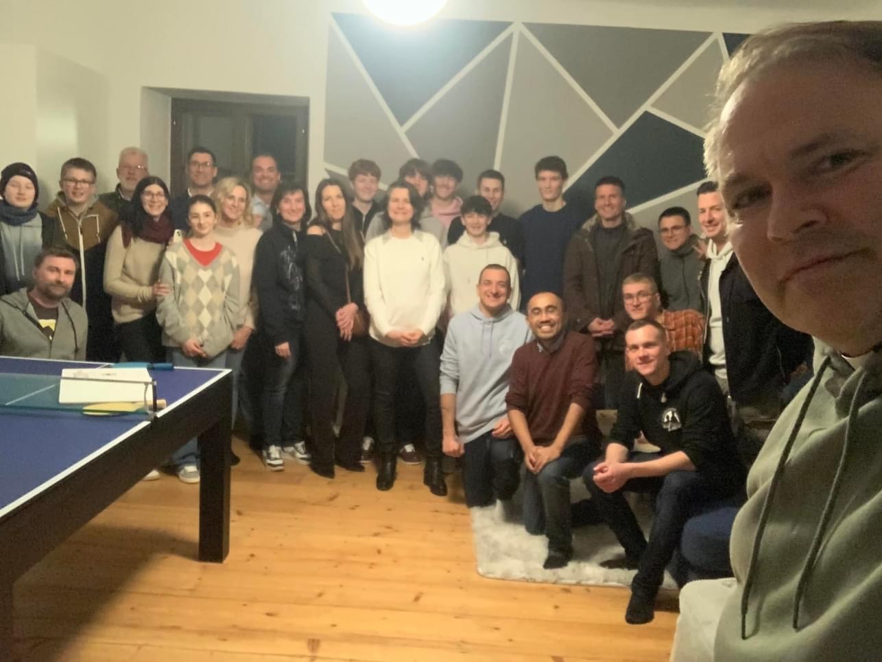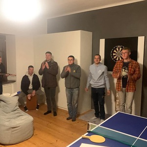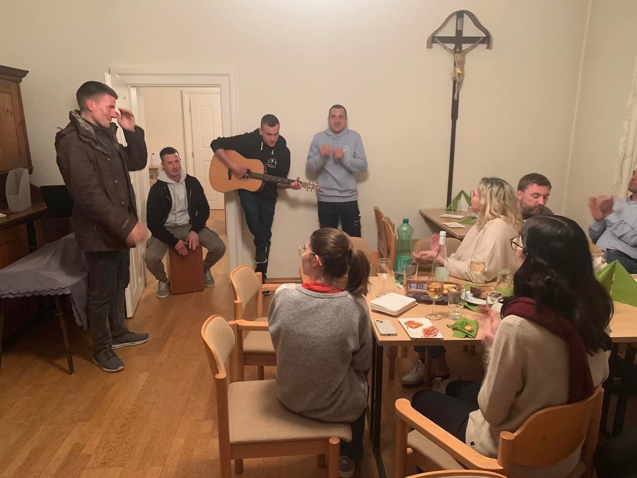 18:45 Uhr Aufnahme des Probebetriebs des Jugendraums, dabei wurde auch gleich die Gemeinschaft Cenacolo dazu eingeladen mit uns zu essen.