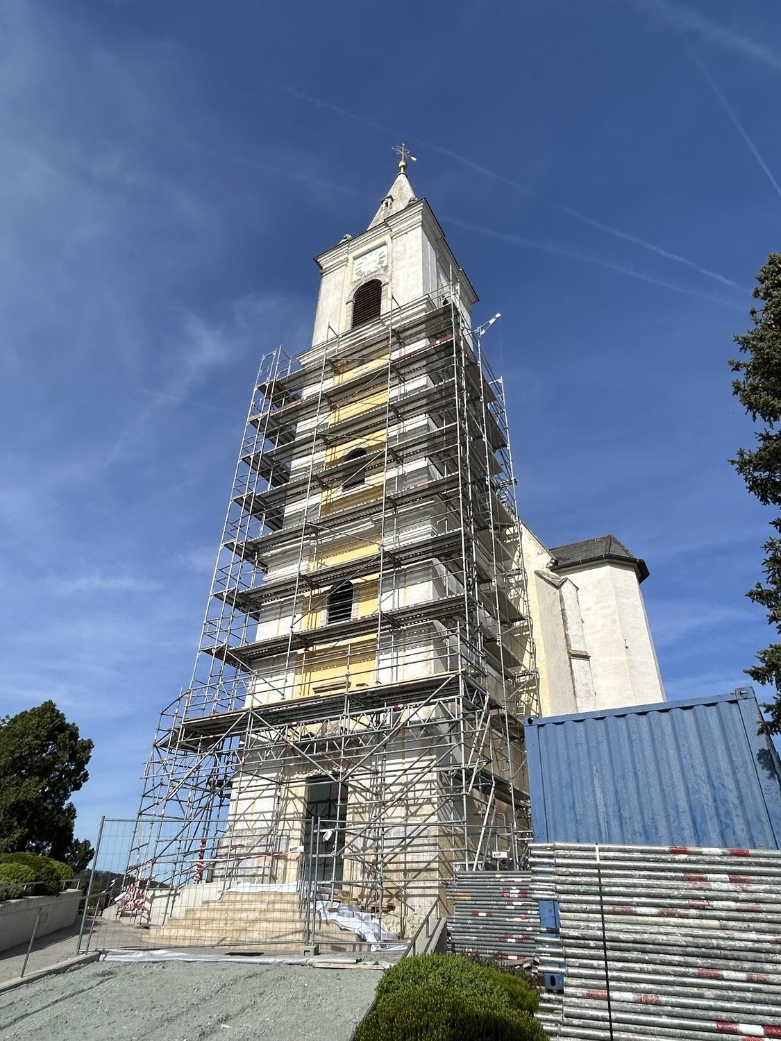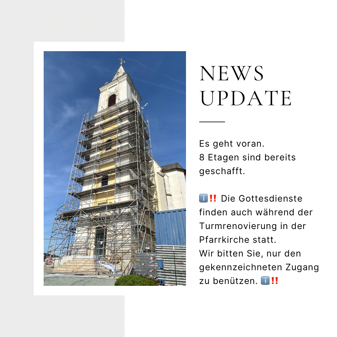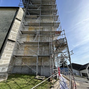 Die Gottesdienste finden auch während der Turmrenovierung in der Pfarrkirche statt.