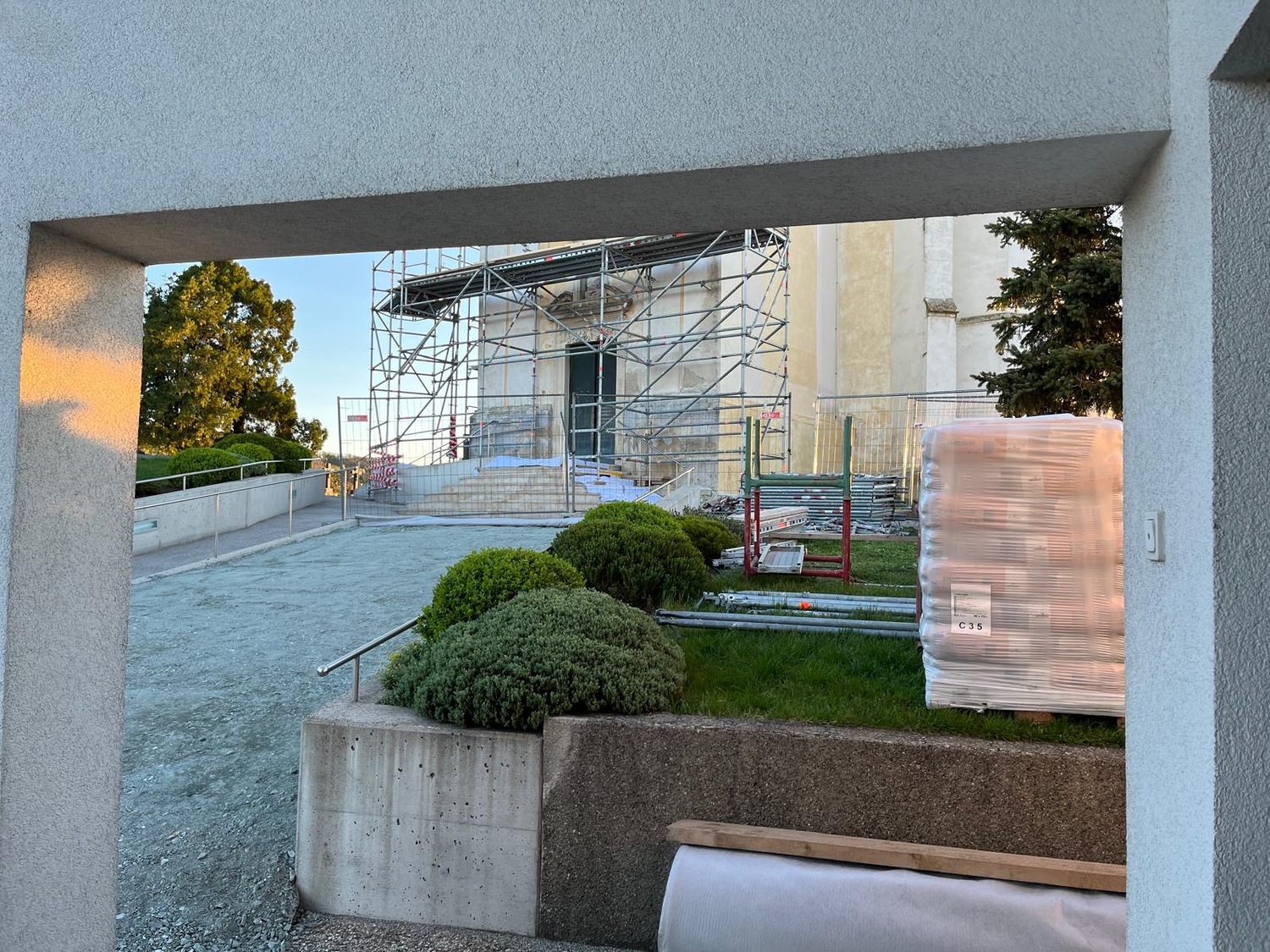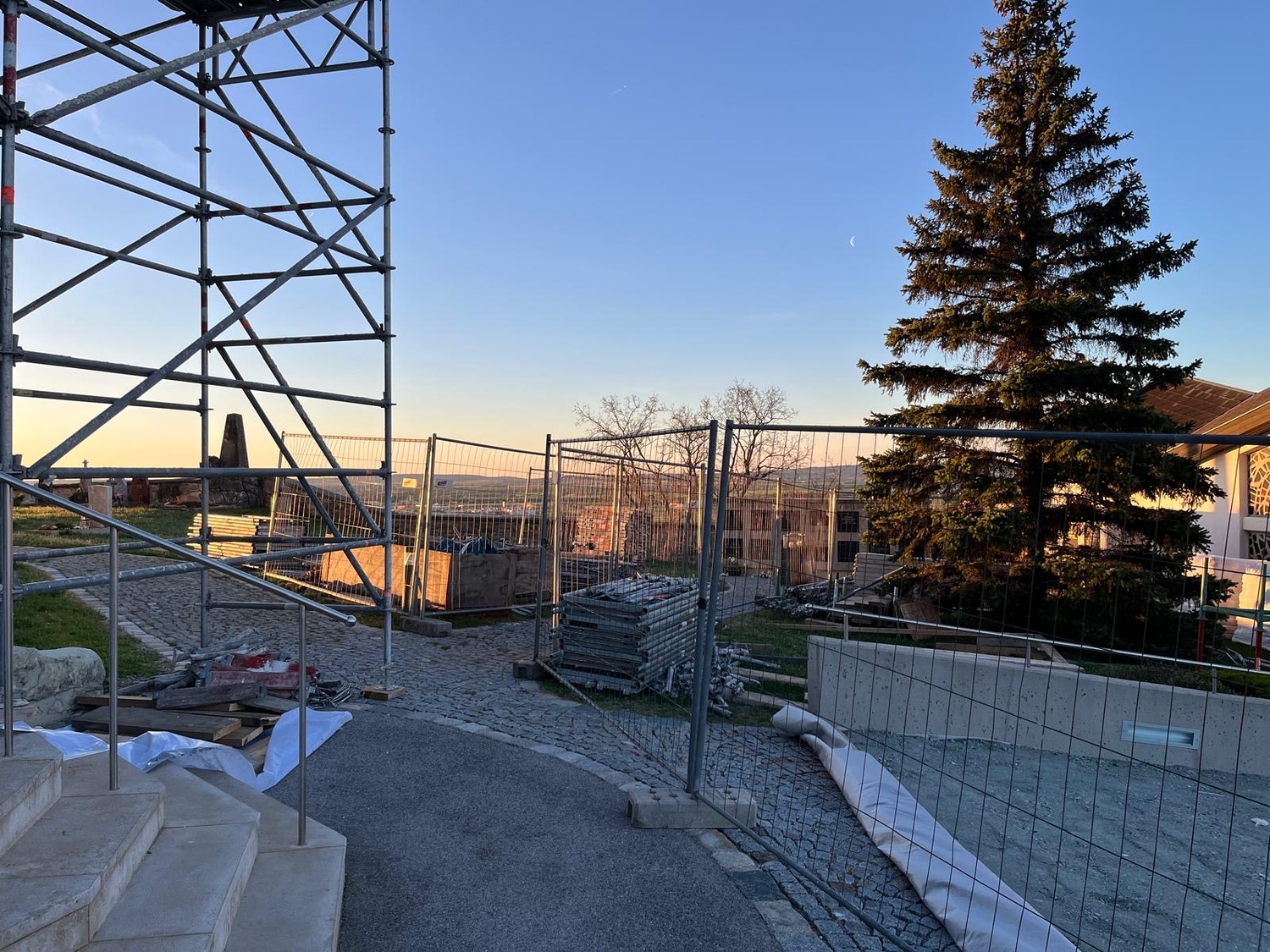 Es ist großartig, dass trotz des starken Windes, aber bei Sonnenschein mit dem Aufbau des Gerüsts begonnen werden konnte. Hoffentlich bleibt das Wetter stabil, damit die Arbeiten gut voranschreiten.