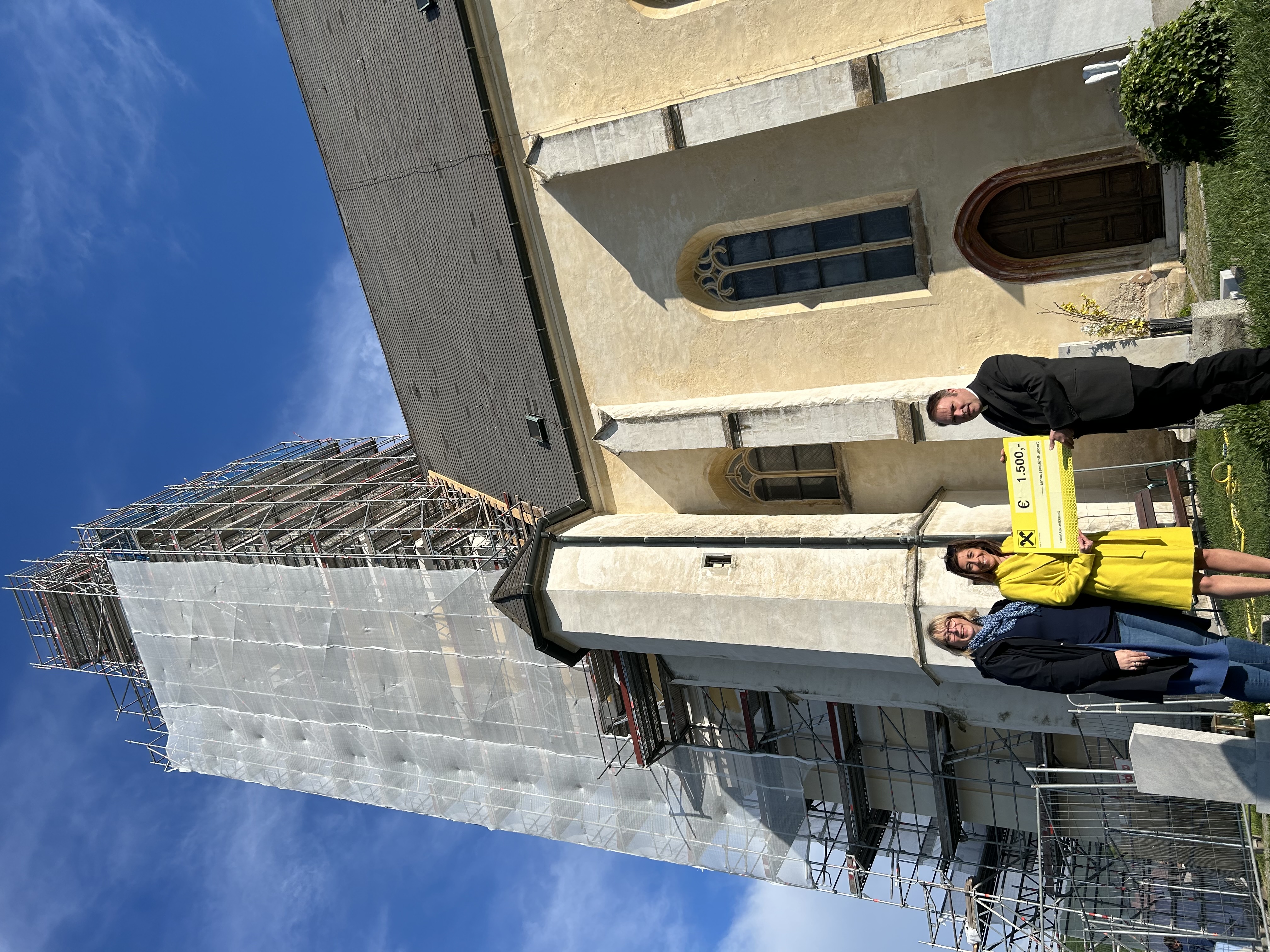 Heute wurde von der Regionalleiterin der Raiffeisenlandesbank, Mag. Christina Locsmandy, ein Scheck an Pfarrer Alexander Wessely und Kuratorin Kerstin Kosky übergeben.