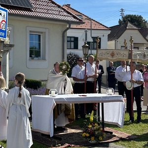 Schließlich gehen wir noch mit unserer Prozession am Haus eines Kameraden unseres Pfarrers vorbei, seine Frau sieht nicht mehr gut, ihm ist es gesundheitlich auch schon einmal besser gegangen. Seine Frau kommt vor die Türe. Wir halten an und auch hier wird der Segen gespendet.