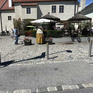 Das Ausschwenken zu den Gästen vom Café um auch ihnen den Segen zu spenden ist jetzt im dritten Jahr unseres Pfarrers Alexander schon Routine, aber wenn man bei einem Haus vorbeikommt, wo zwischen zwei Vasen der Stoffesel von Missio steht, weiß man, dass dies die Bitte an ihn ist, mit der Monstranz ganz nahe zu kommen. Warum? Diesen Esel haben wir zu Ostern 2023 hergeschenkt. Hergeschenkt an eine alte Frau, welche seit Jahren bettlägerig ist und nur noch sich und ihre Stofftiere wahrnimmt, die sie pausenlos streichelt. Ihr betagter Mann und ihre Familie pflegen Sie zu Hause so gut es geht. So stand letztes Jahr hat unser Pfarrer festgestellt, dass wohl der Osteresel zum Streicheln fehlen würde. Dieser Esel hat uns heute zum Fenster gelockt, Pfarrer Alexander hat den Segen gespendet, der Ehemann der Frau hat zu weinen begonnen und sich bedankt und die ganze Familie ebenso …