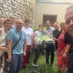 Sehr präsent ist Pfarrer Alexander noch die erste Begegnung mit dem Pfarrteam. „Ich wurde sehr herzlich willkommen geheißen,“ sagte er, „es war von Anfang an ein Miteinander auf Augenhöhe. Ein fröhliches Miteinander trotz manchmal schwieriger Situationen. So habe er ein sehr engagiertes Team von hauptamtlichen Mitarbeiterinnen und Mitarbeitern vorgefunden, von welchen sich auch viele neben ihrer bezahlten Tätigkeit ehrenamtlich in der Pfarre engagierten. Zu den hauptamtlichen Mitarbeiter kam noch der Kirchendienst, also Mitarbeiterinnen und Mitarbeiter, welche während der Öffnungszeiten des Kalvarienberges die Besucherinnen und Besucher willkommen heißen und den Erhaltungsbeitrag erbitten. „Dafür werden sie finanziell entschädigt, was mir sehr wichtig war, verbringen sie doch viel Zeit in der Kirche.“