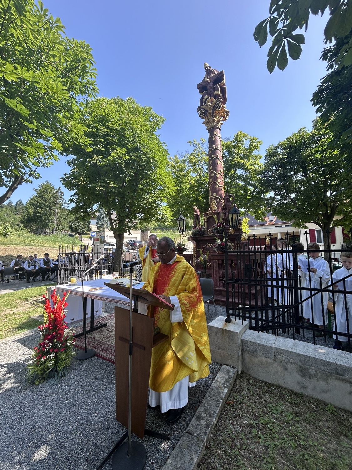 Bei strahlendem Wetter feierten wir heute im Pfarrverband eine besonders festliche hl. Messe im Freien – vor der eindrucksvollen Kulisse unserer Dreifaltigkeitssäule.