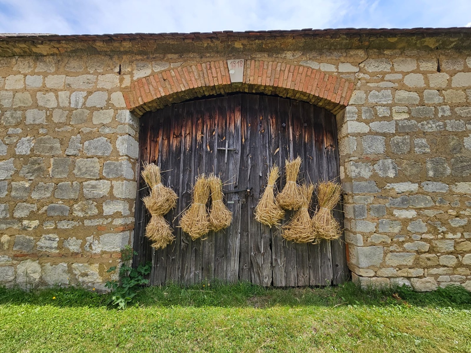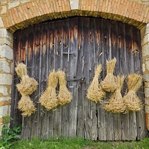 Die Ähren sind geschnitten und getrocknet, die Ährenbüscherl werden jetzt gebunden – viele helfende Hände und zahlreiche Stunden Arbeit sind nötig, damit unsere Krone zum Erntedank in voller Pracht erstrahlt.