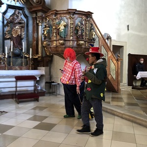 Ja, wir haben heute sowohl in Kleinhöflein, als auch am Oberberg Gottesdienst mit Bezug zum heutigen Faschingssonntag gefeiert.