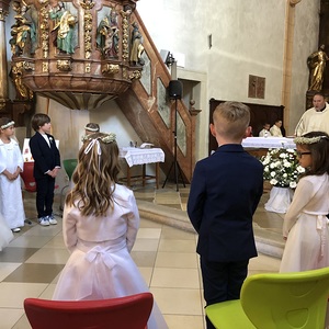 Am Samstag, den 28. Mai 2022, feierten 9 Kinder ihre Erstkommunion. Mit einem festlichen Zug, ging es begleitet von der Winzerkapelle Kleinhöflein, vom Pfarrhof in die Pfarrkirche. Bereits vor einigen Monaten haben sie sich auf den Weg gemacht und waren gemeinsam mit ihren Eltern, Lehrern, Tischeltern und den Mitarbeitern der Pfarre unterwegs.