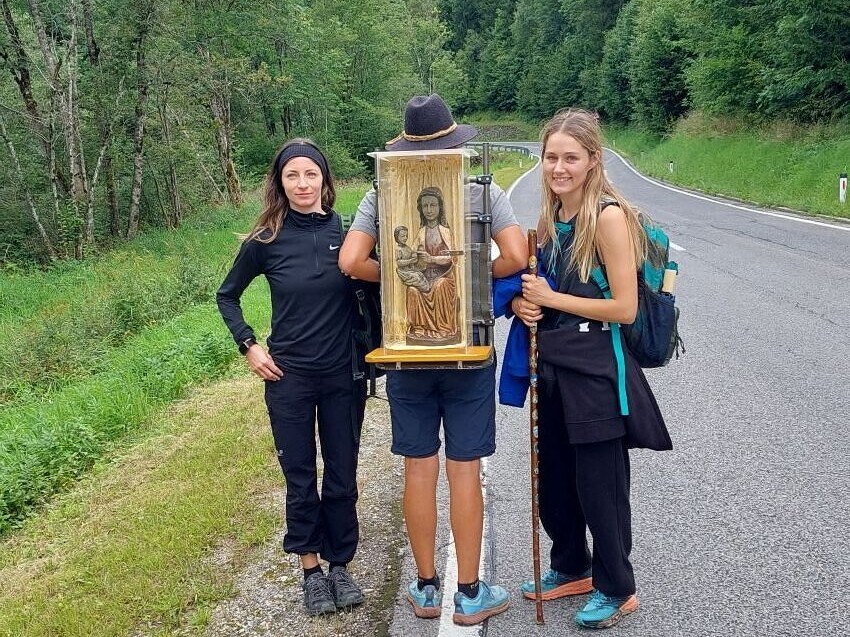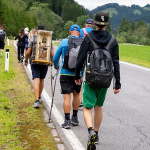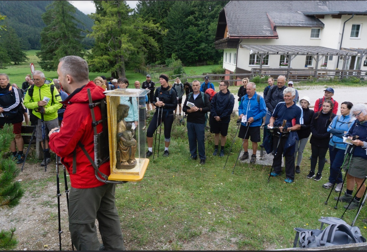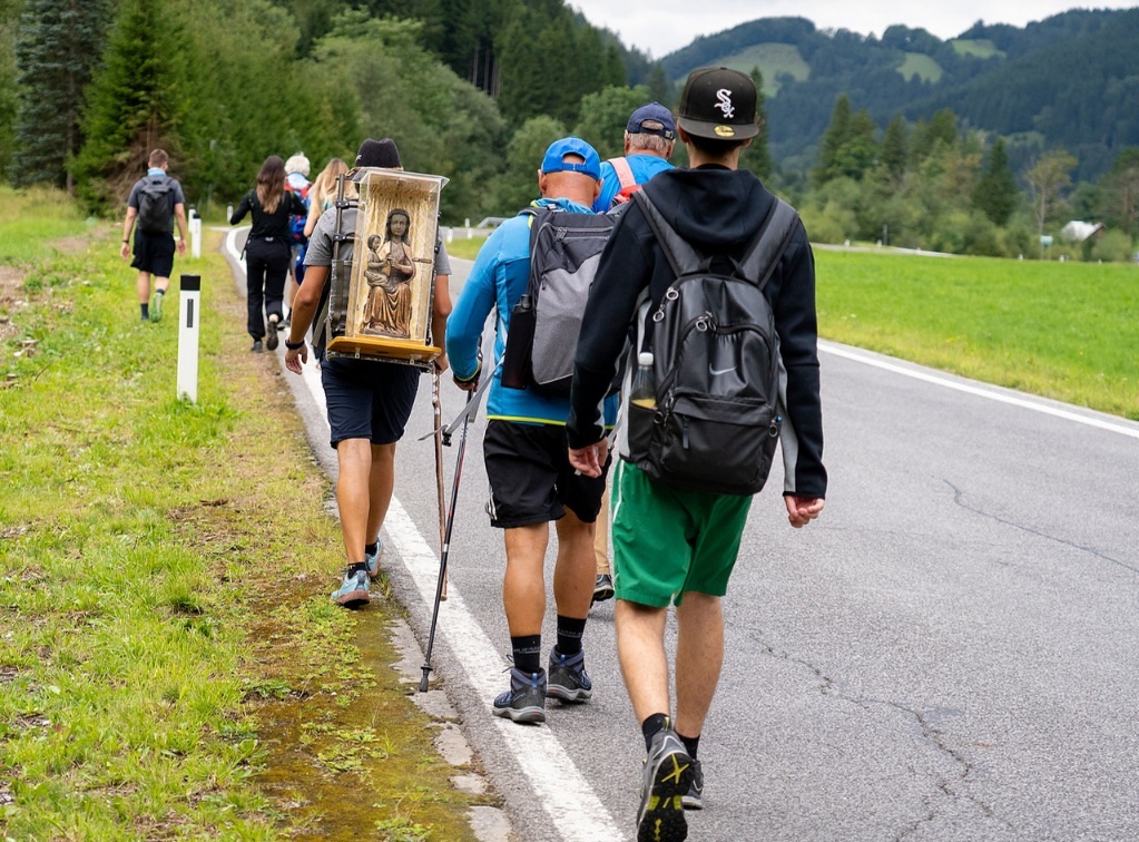 Am Donnerstag, 21. August starteten viele Fusswallfahrer den Weg nach Mariazell, am Rücken die Statue, die abwechselnd von den Fußwallfahrern getragen wurde.