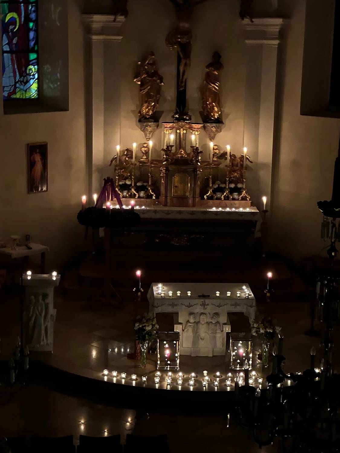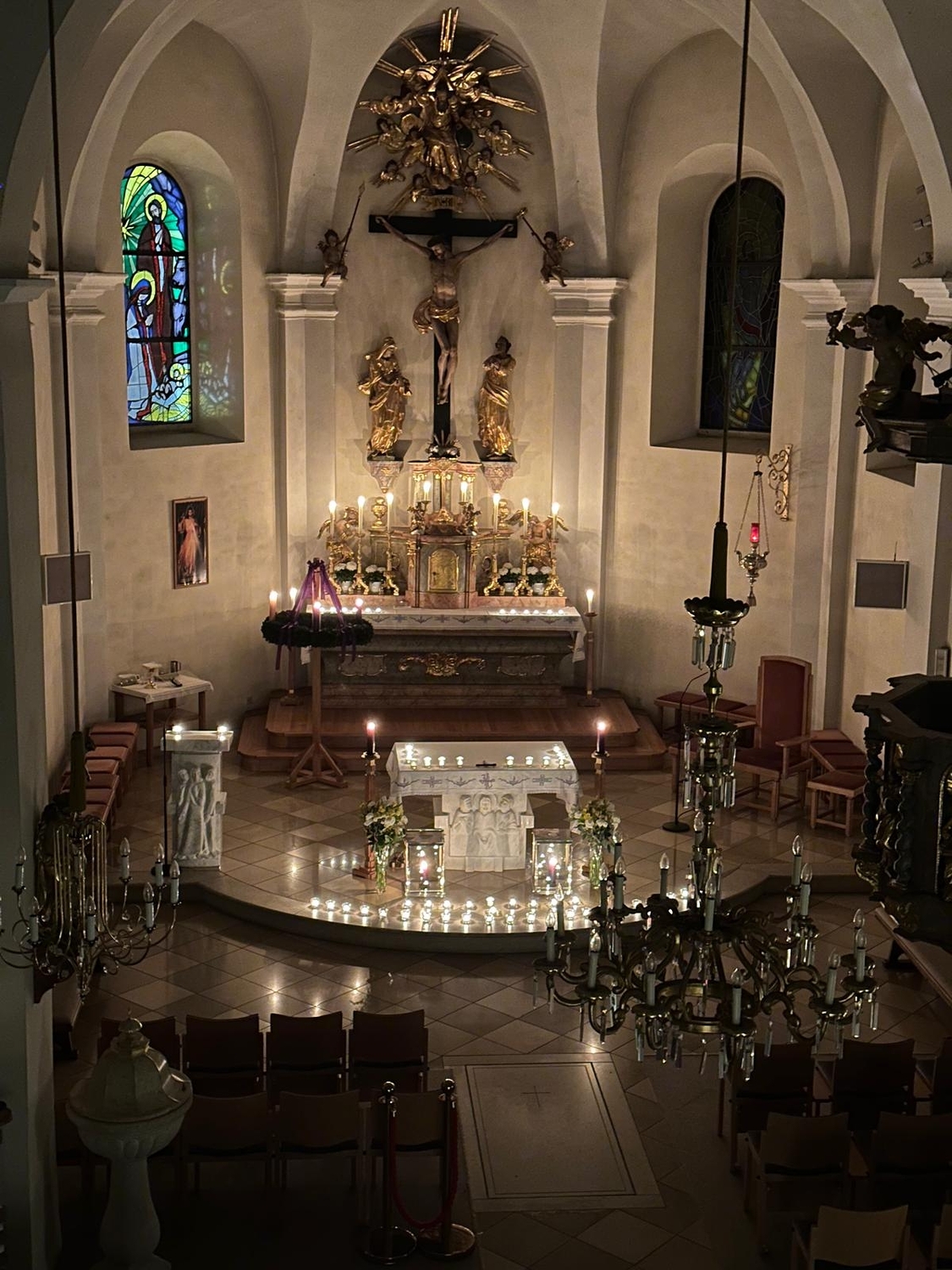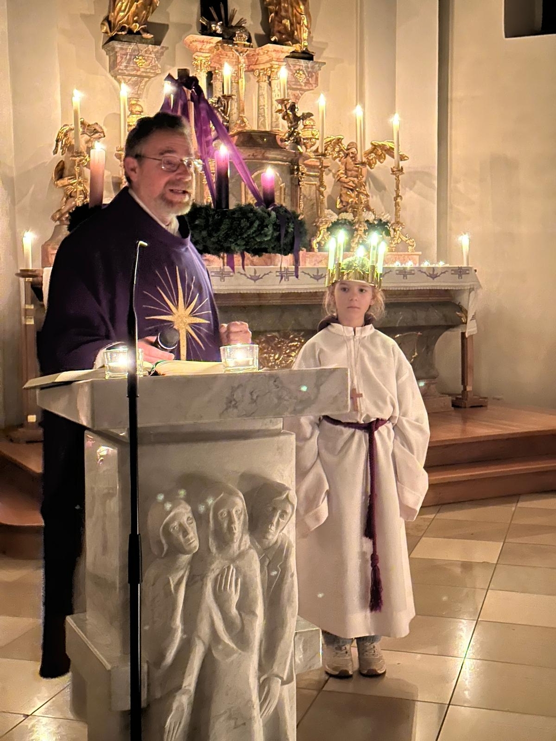 Im Gedenken an die hl. Lucia feierte Pfarrmoderator Mag. Stefan Jahns die Roratemesse am Montag, 15.12.2025. Zur Mitfeier waren besonders Schüler und Jugendliche eingeladen. Viele mitgebrachte Kerzen erleuchteten die Kirche und so wurde die Messe ohne elektrische Beleuchtung gefeiert.