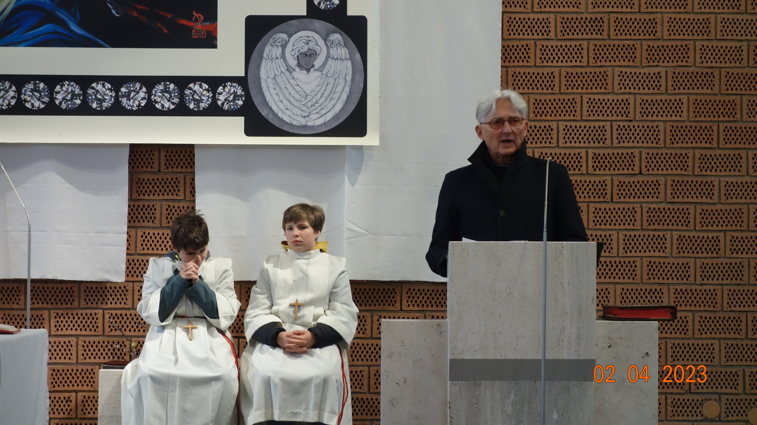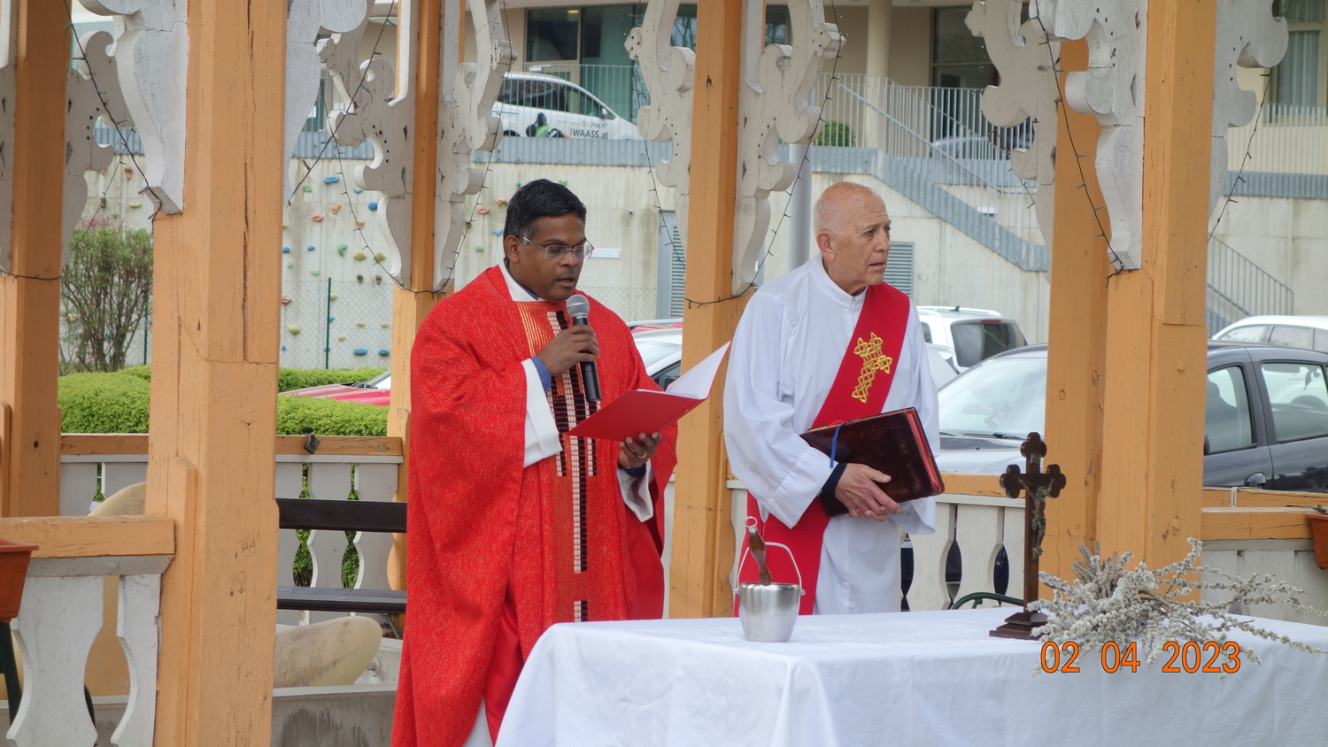 Einer der wichtigsten Inhalte des Palmsonntagsgottesdienstes ist der schon traditionelle Vortrag der Passion - der Leidensgeschichte unseres Herrn Jesus Christus. Die Texte von Jesus las Pater Jakob, die sonstigen Texte Nadja Hutter, sowie Hermann Dittrich die Texte die dem Evangelisten Matthäus zugeschrieben werden.