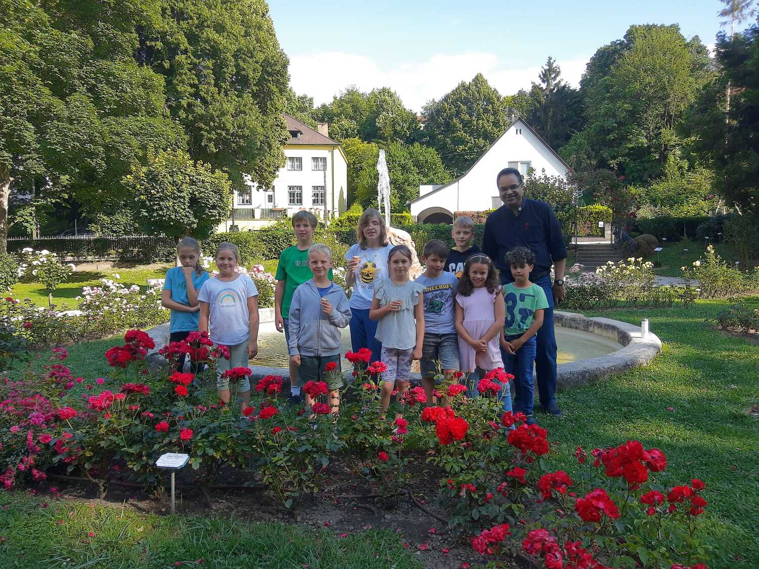 Aber es wurde mehr daraus. Nämlich ein wunderschöner Nachmittag, den die Erstkommunionkinder und Ministranten mit Pater Kuruvila sichtlich genossen. Nach dem Eisessen gings zu Spiel und Spaß in den Kurpark. Die Kinder haben sich ganz toll unterhalten und man spielte zum Schluss noch Schach, auf dem großen Schachbrett und mit den großen Schachfiguren in der Schubertalle, am Rande des Rosariums.