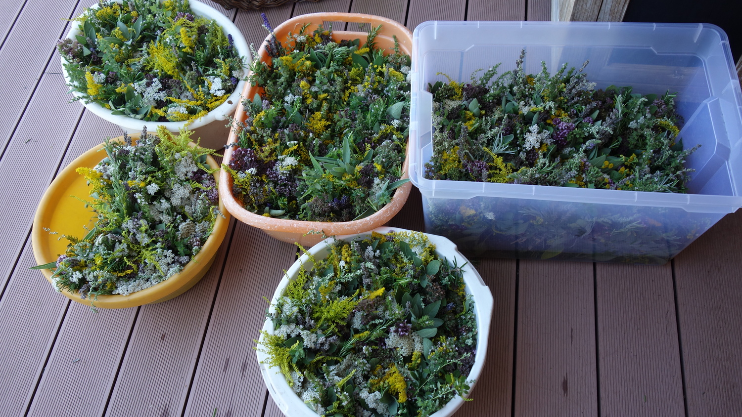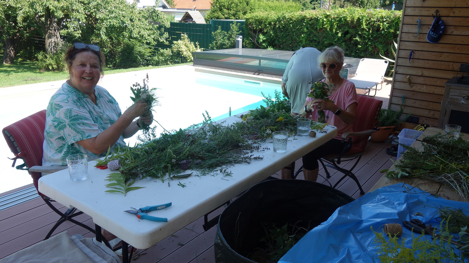 Elfi & Sissy beim Kräuterstrüßerl binden
