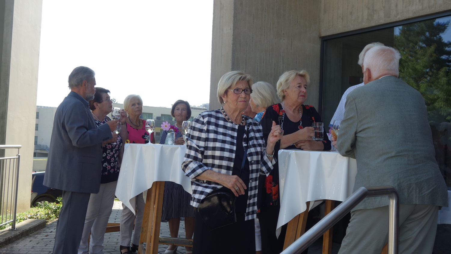 Im Anschluss an die Hl. Messe wurde zu einer Agape geladen, die sich großen Zuspruchs erfreute und bei der es den Gläubigen möglich war mit dem Jubilar zu sprechen. So war es auch den Teilnehmern an der Hl. Messe und der Agape möglich Pater Kuruvila zu seinem Jubiläum zu gratulieren.