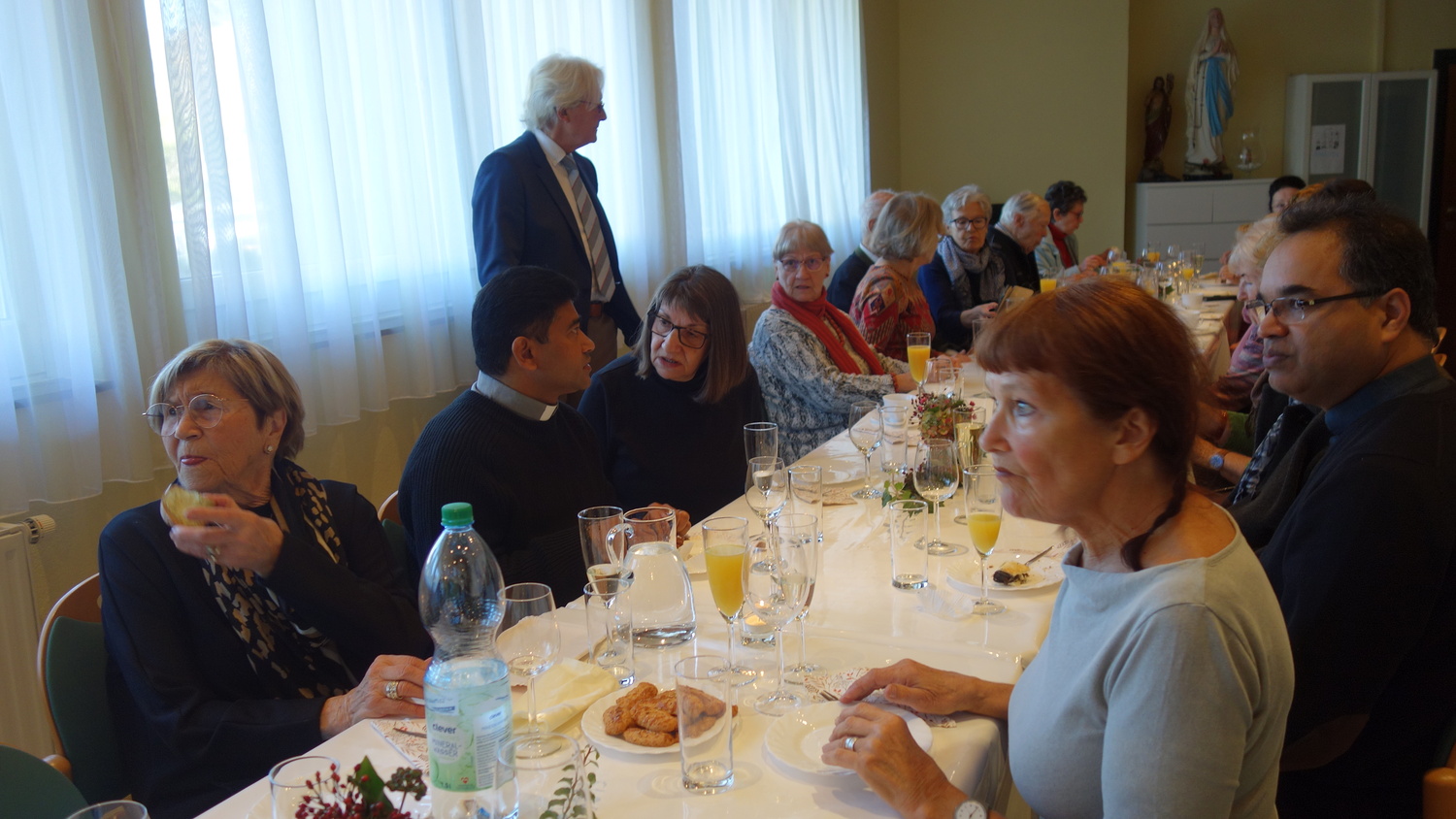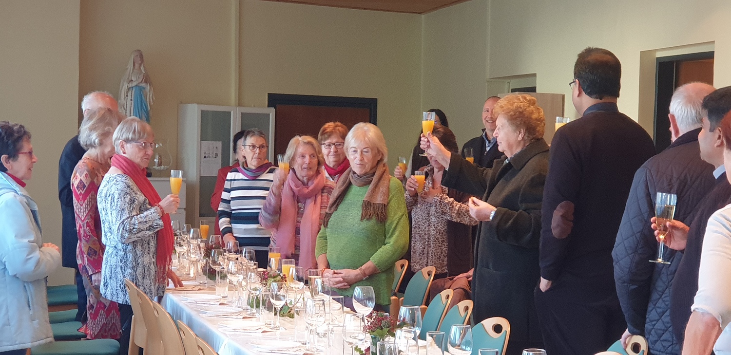 Am Ende des Gottesdienstes erteilte Pater Kuruvila den Segen - ganz besonders erwähnt wurden auch hier die Jubilare. Im Anschluß an den Segen luden Pater Kuruvila und die Pfarre Bad Sauerbrunn die Jubilare zu einer kleinen Feier in den Kommunikationsraum der Kirche.