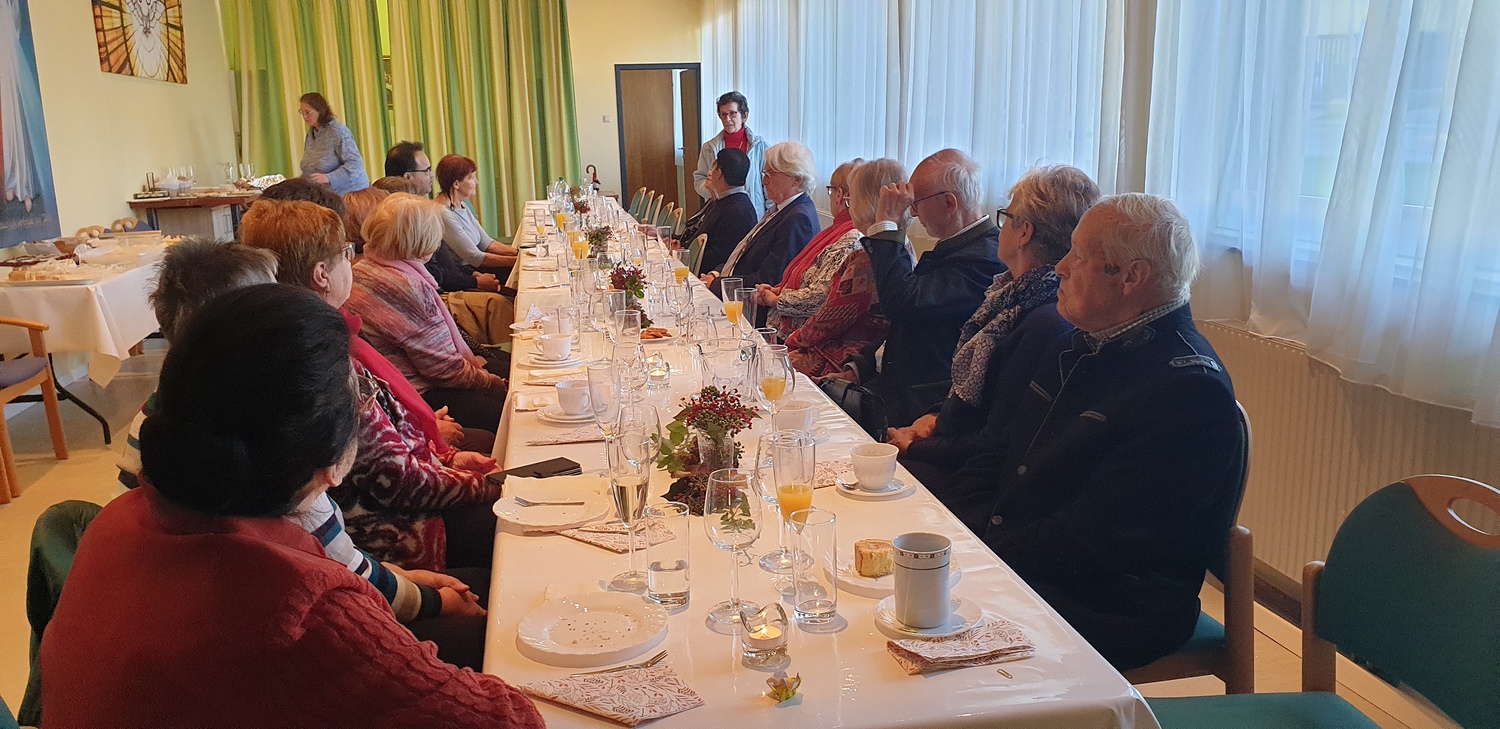 Auch hier fanden die Jubilare einen festlich geschmückten Raum vor. Es gab Aufstrichbrote, mit schmackhaten Aufstrichen von Elisabeth Hanner und Nadja Hutter. Viele Pfarrmitglieder ließen es sich nicht nehmen, für die Jubilare dieses Jahres, ihre Backkünste unter Beweis zu stellen und so gab es sehr delikate Mehlspeisen. Es gab so viel davon, dass den Jubilaren auf Wunsch auch Mehlspeise für eine Feier zu Hause mitgegeben werden konnte.