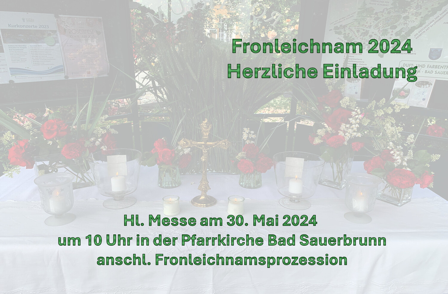 Geschmückte Altäre an denen die Prozession vorbeiführte und wo die liturgischen Gebete, Evangelien, Fürbitten und Texte vorgetragen wurden, waren in der Schulgasse, im Rosarium und im Pavillon in der Kirchengasse errichtet. Zum Ende der Prozession und der Hl. Messe zu Fronleichnam gings wieder in die Pfarrkirche.