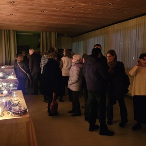 Im Kommunikationsraum hatte die Pfarre auch Getränke und kleine Speisen vorbereitet. Es gab süßen Strietzl, zweierlei Brot, sowie Tee, Orangensaft, Apfelsaft, Mineralwasser und Sekt. Auch das fand guten Zuspruch und den Dank der Besucher.