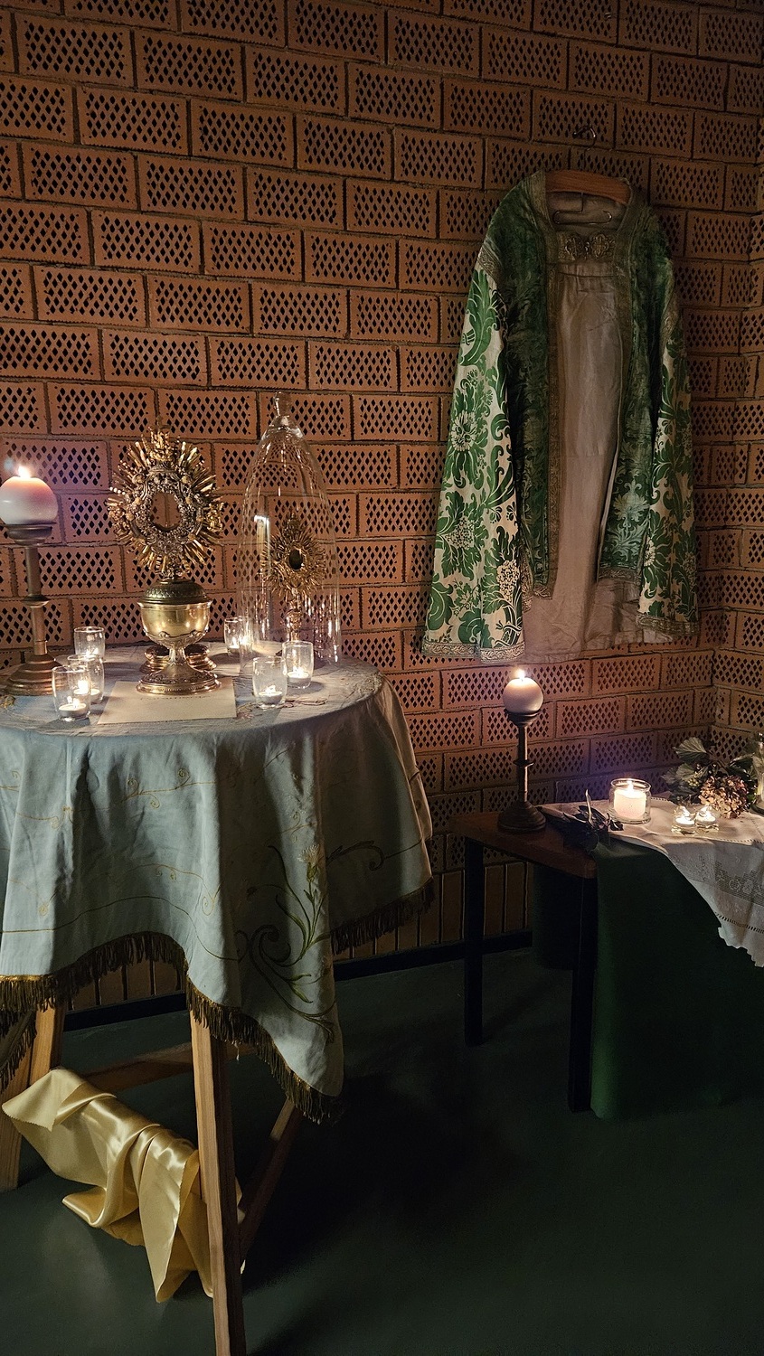 Die Besucher wurden über die Exponate mit beigefügten Texten informiert. So wurden auch unter anderem Kelche, Monstranzen, Kerzenleuchter und andere Gegenstände aus dem Fundus der alten Kirche von Bad Sauerbrunn gezeigt und auch sehr wertvolle Chormäntel und Messgewänder. Geordnet waren die Meßgewänder nach Liturgiefarben und mit beigefügten Texten, wurde die Bedeutung der Liturgiefarben erklärt.