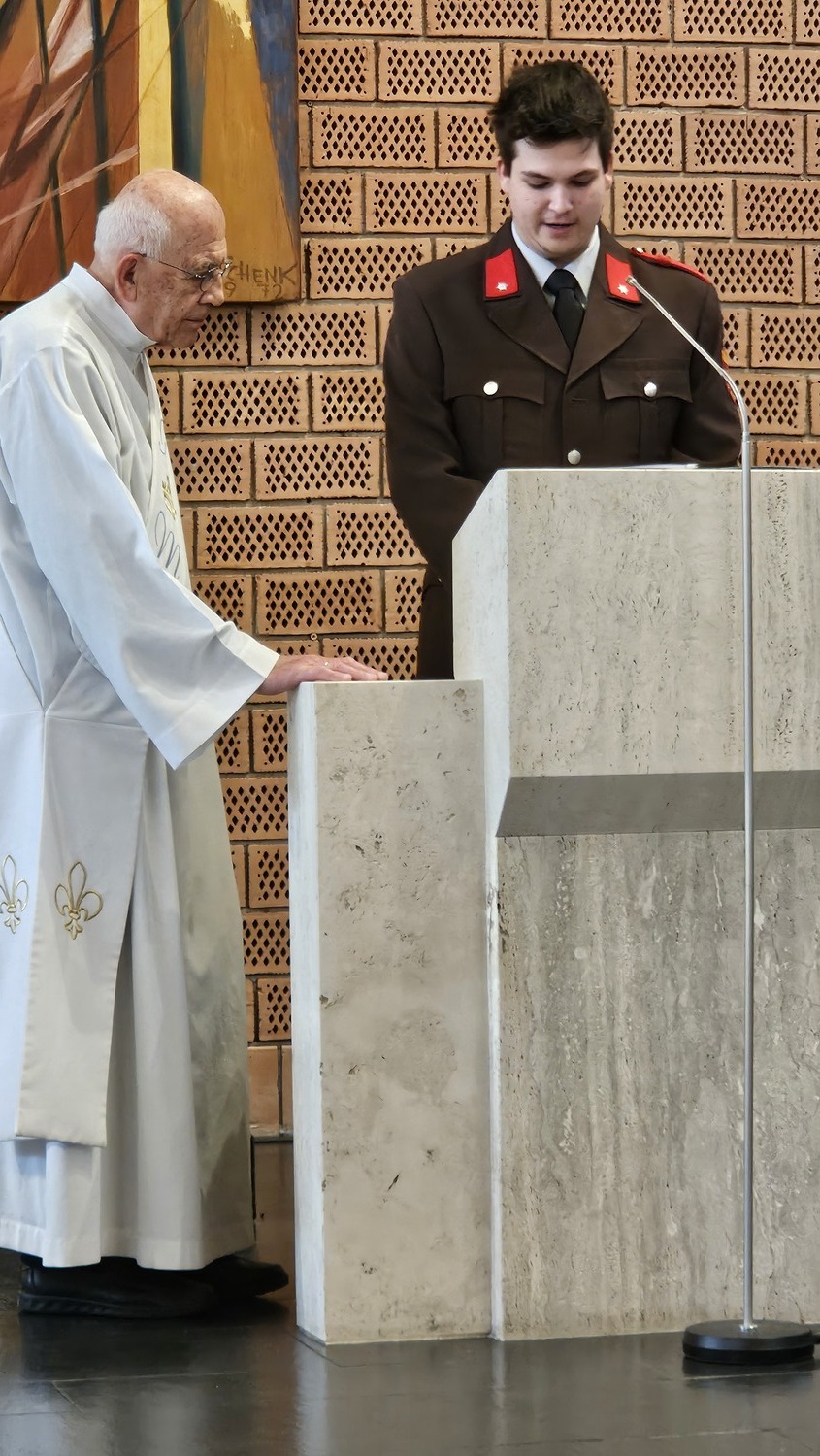 Mehrfach bedankte sich Pater Kuruvila bei den Mitgliedern der Freiwilligen Feuerwehr für deren Freiwilligendienst für die Gemeinschaft. Dieser freiwillige Dienst werde von den Feuerwehrfrauen und -männern oft auch unter Einsatz des eigenen Lebens geleistet, führte Pater Kuruvila in der Predigt weiters aus.
