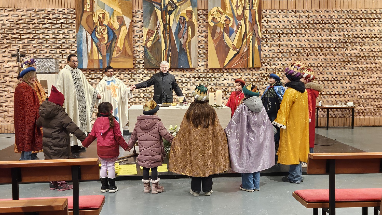 Die Sternsinger eröffneten den Gottesdienst mit ihrem Sternsingerlied und den Texten,
