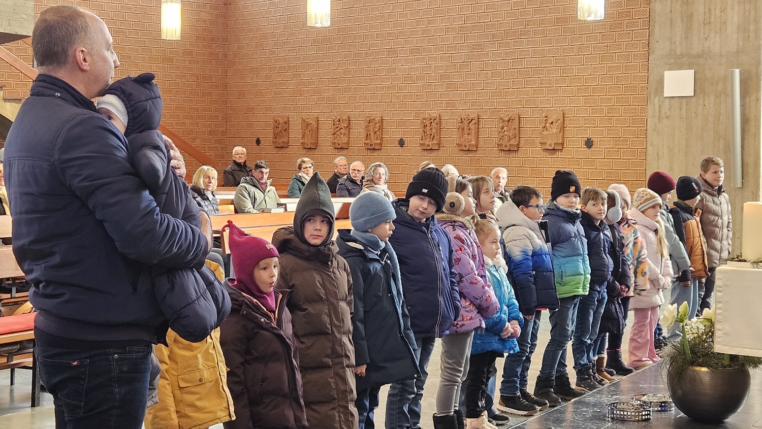 Gemeinsames Vater Unser mit den Kindern am Altar