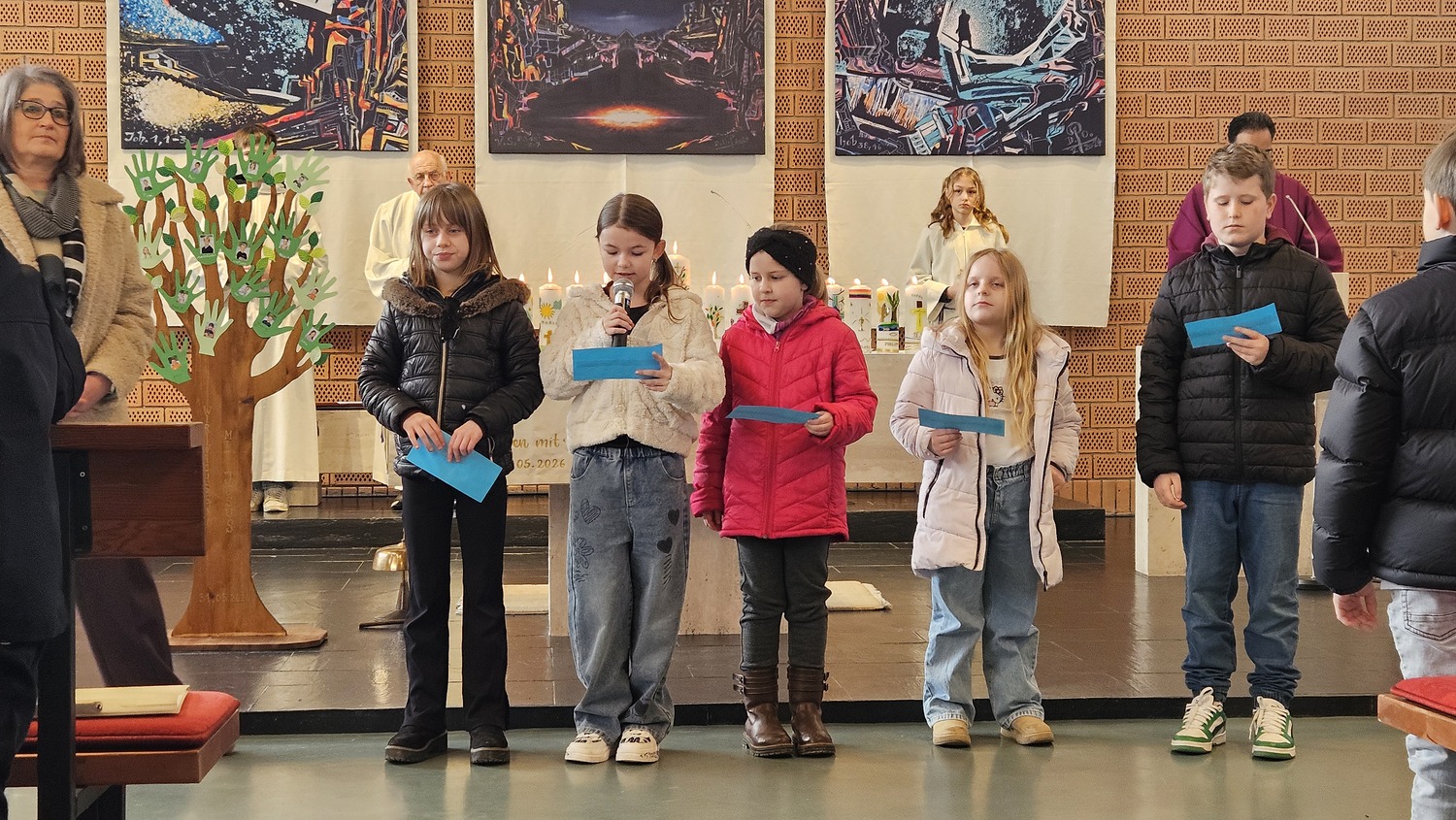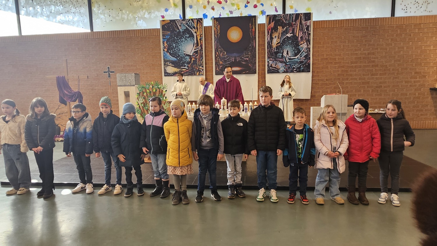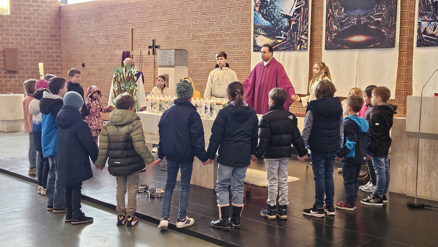Sechzehn Kinder der Pfarrgemeinde werden für die Feier der Erstkommunion am 31. Mai 2026 vorbereitet. Sie haben sich als Motto für die Vorbereitung und das Fest der Hl. Erstkommunion "Wir wachsen mit Jesus" gegeben. Während der Vorbereitung zur Erstkommunionfeier, hatten die Erstkommunionkinder bereits die Erstkommunionkerzen selbst gestaltet, welche bei diesem Gottesdienst am Altar standen. Im Rahmen der Vorbereitung, nahmen die Erstkommunionkinder am Fest der "Taufe des Herrn", auch am Kindersegen teil.