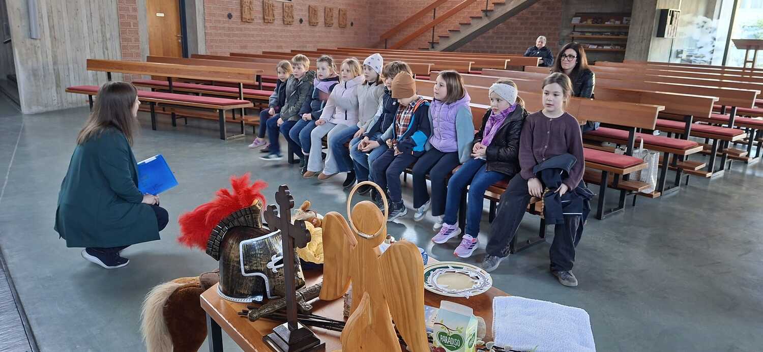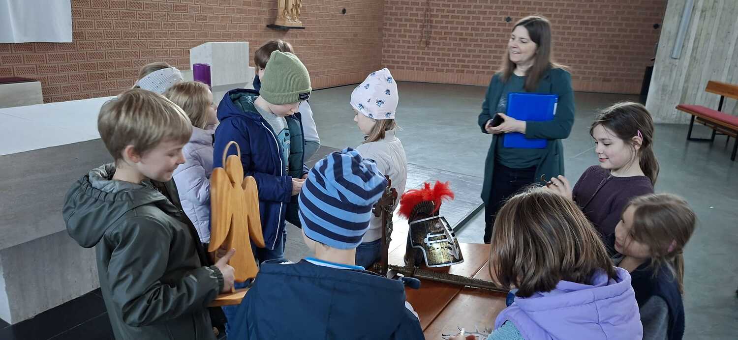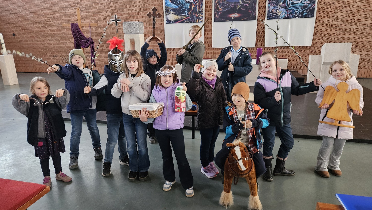 Utensilien, die zum Mitmachen anregten wurden den Kindern präsentiert und damit wurden auch einzelne Szenen aus dem Kreuzweg erarbeitet. Die Kinder engagierten sich sehr und waren auch sehr interessiert dabei. Die Kinder hatten natürlich auch Spass dabei und erlebten einen wichtigen Inhalt der Fastenzeit und der Vorbereitung auf das Osterfest.