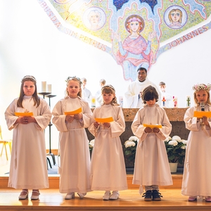 Auch dieses Jahr fand am "Weißen Sonntag" in unserer Pfarre die Erstkommunion statt. 11 Kinder hatten sich zum Thema "Jesus das Licht" auf den Empfang der ersten heiligen Kommunion vorbereitet.