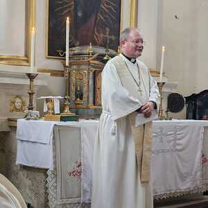 Am Donnerstag, dem 11. Juli 2024, um 16.00 Uhr, feierte der Pfarrverband Kobersdorf-Weppersdorf-Lackenbach in der Schlosskapelle Kobersdorf einen festlichen Gottesdienst mit dem Propst von Stift Klosterneuburg, Mag. Anton Höslinger, Dechant Mag. Shinto Varghese Michael, Altpfarrer Mag. Karl-Heinz Mück und Diakon Hubert Zach. Für die musikalische Umrahmung der Hl. Messe sorgte die sehr professionelle rhythmische Gruppe der Pfarre Kobersdorf unter der Leitung von Christa Reiner. Als Ministranten fungierten in ihren Feuerwehruniformen Feuerwehrkommandant Gerhard Klafsky und Richard Kampits. Den Mesnerdienst leistete der Kobersdorfer Mesner Fritz Ecker.