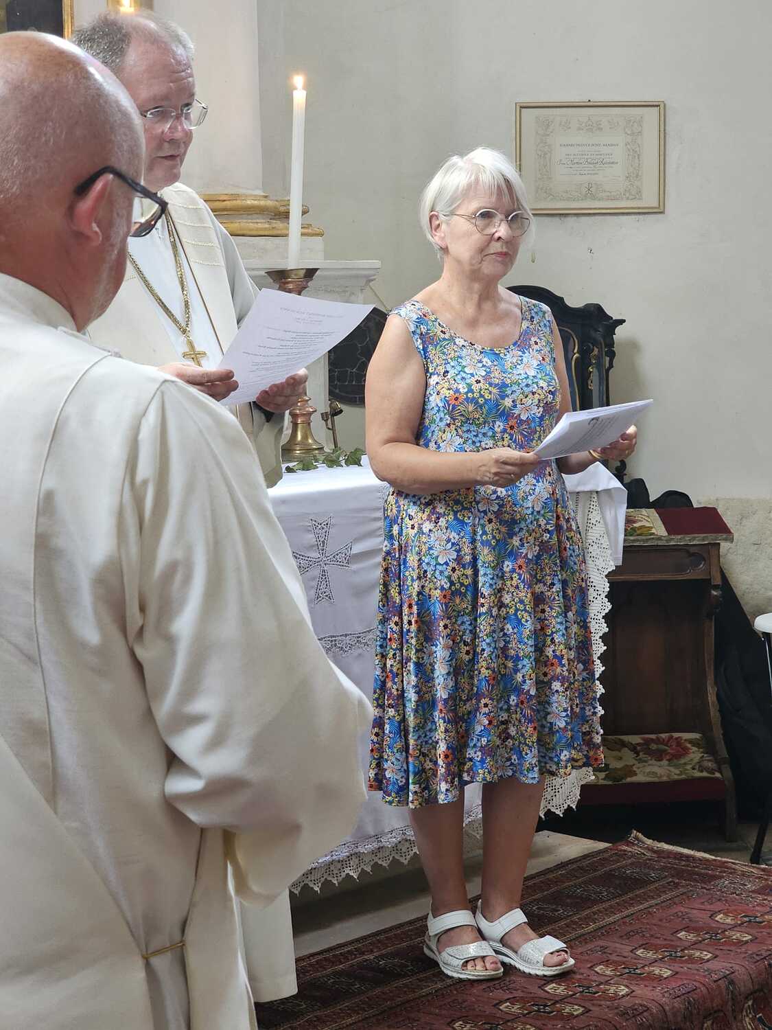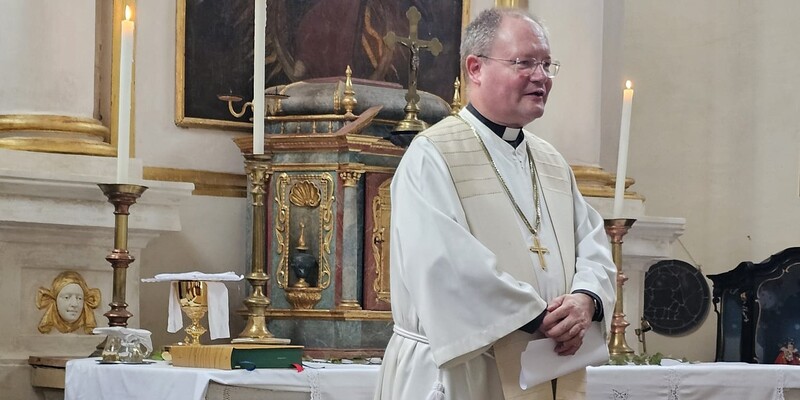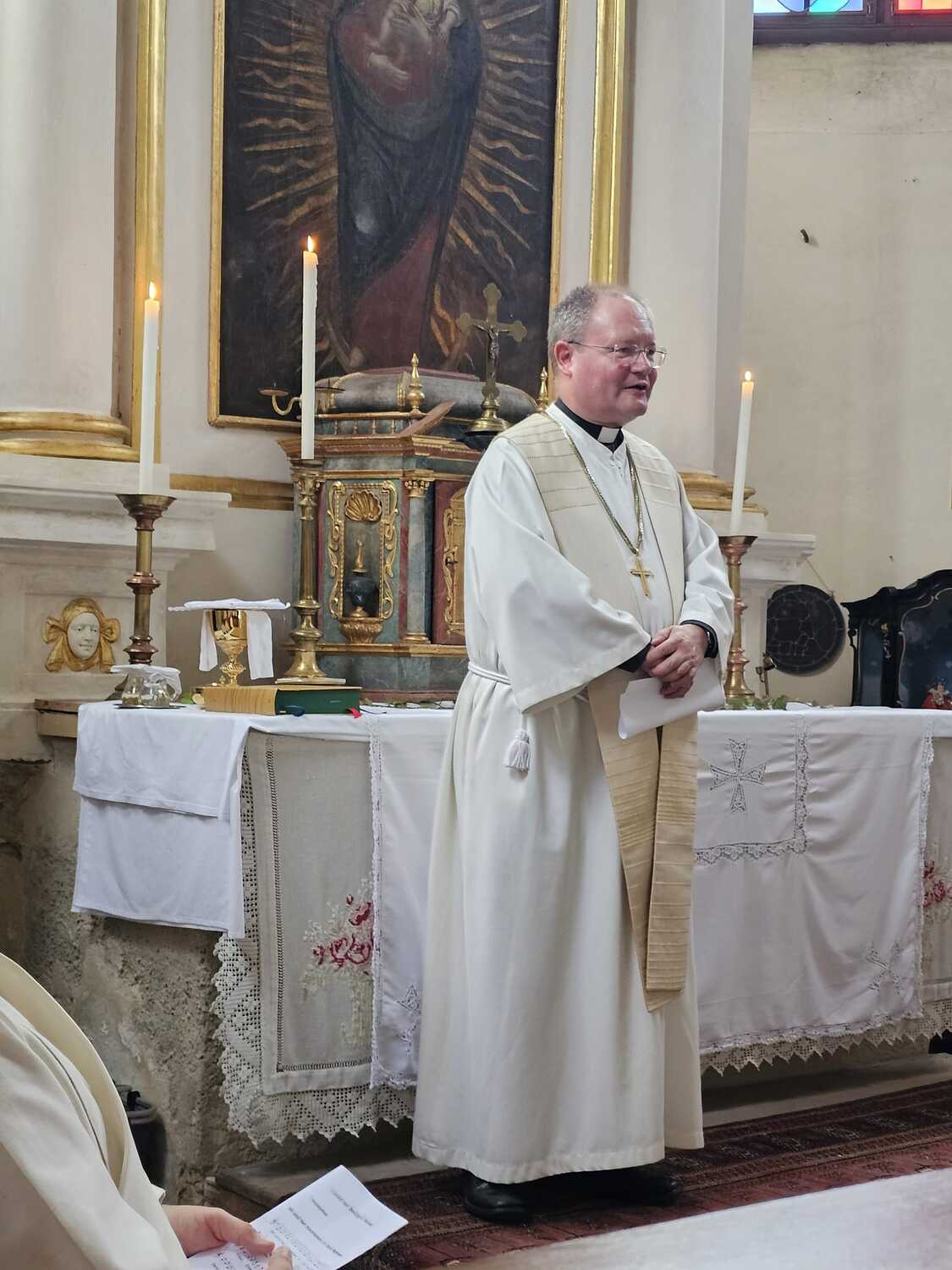 Beim Gottesdienst am 11. Juli in der Schlosskapelle Kobersdorf nahmen rund 80 Frauen und Männer teil. Das Wetter zeigte sich von seiner besten Seite. Die Hitze ging kurz vor Messebeginn merklich zurück, die Sonne war wolkenverhangen und der sich ankündigende Regen fiel erst einige Zeit später vom Himmel.