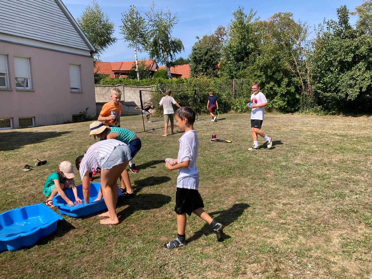 Am Freitag, dem 23. August wurde ein Sommerfest im Pfarrgarten Lackenbach organisiert, zu dem an die 30 Kinder gekommen sind. Bevor die zahlreichen Angebote an den verschiedenen Stationen ausprobiert werden konnten, haben die Kinder erstmal mit einem Kennenlernspiel begonnen. Fußball, Federball, Sackhüpfen, Volleyball, Dosenwerfen, Mikado und eine Bibel-Rätselrallye standen am Programm. Es wurde gehüpft, gelacht, getanzt und gesungen. An dem heißen Sommertag waren die Wasserschlachten ein sehr beliebter, erfrischender Spaß.