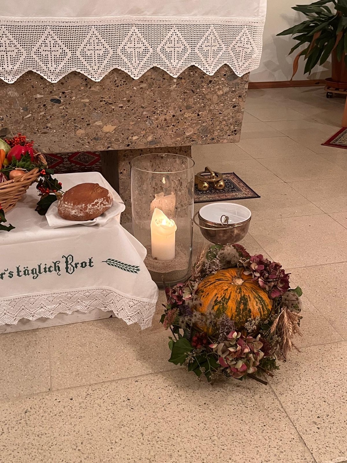 Erntedank ruft uns in Erinnerung, dass wir Teil der Schöpfung Gottes sind und dass dieser seine Schöpfung uns anvertraut hat. Zur Feier und aus Dank werden die Kirchen mit Früchten, Gemüse, Blumen und Brot geschmückt.