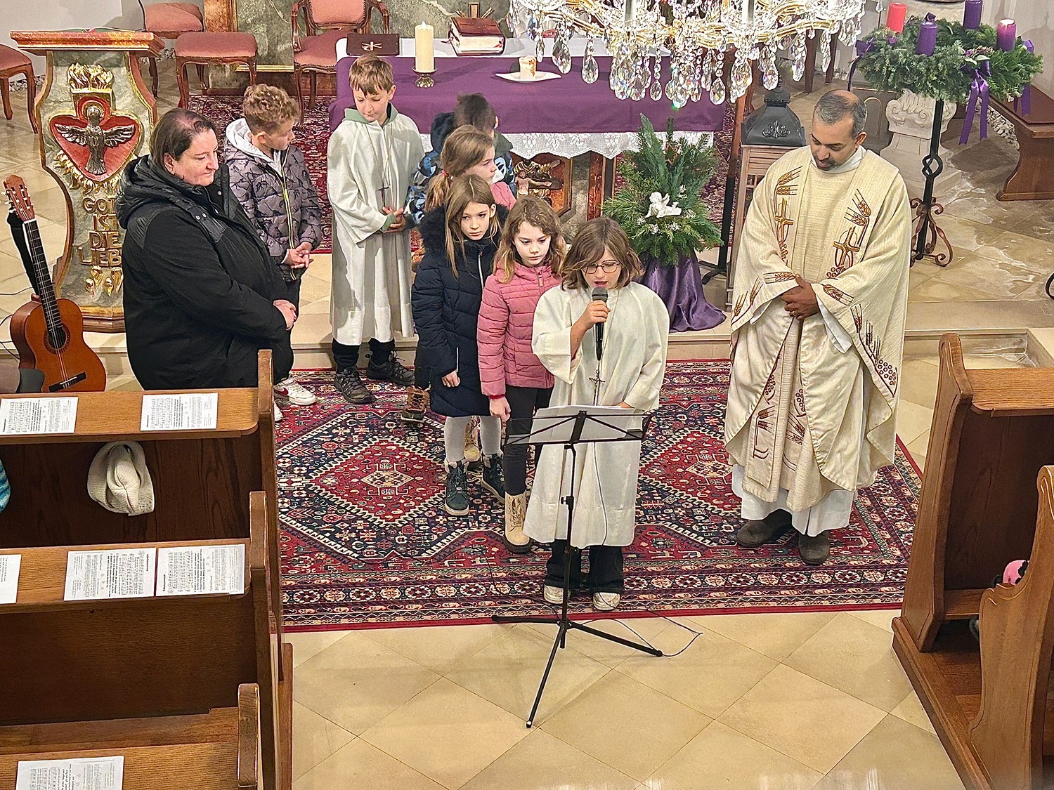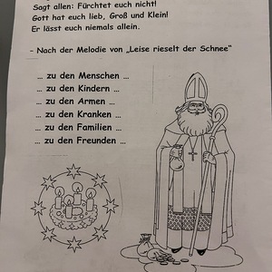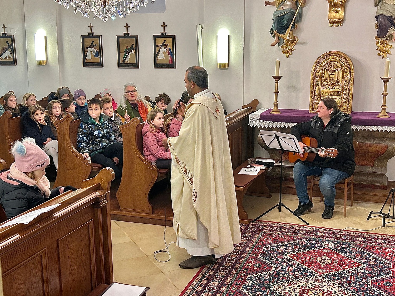 Die Geschichte vom Kornwunder, die Frau Religionslehrerin Doris Horvath vorlies, sollte den Kindern zeigen, wie viel Gutes Bischof Nikolaus den Menschen getan hat. Auch Pfarrer Shinto ermutigte die Kinder in der Predigt, dem Beispiel des Hl. Nikolaus zu folgen und anderen Menschen eine Freude zu machen.