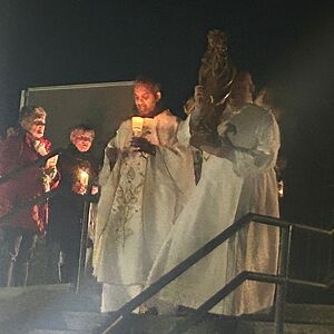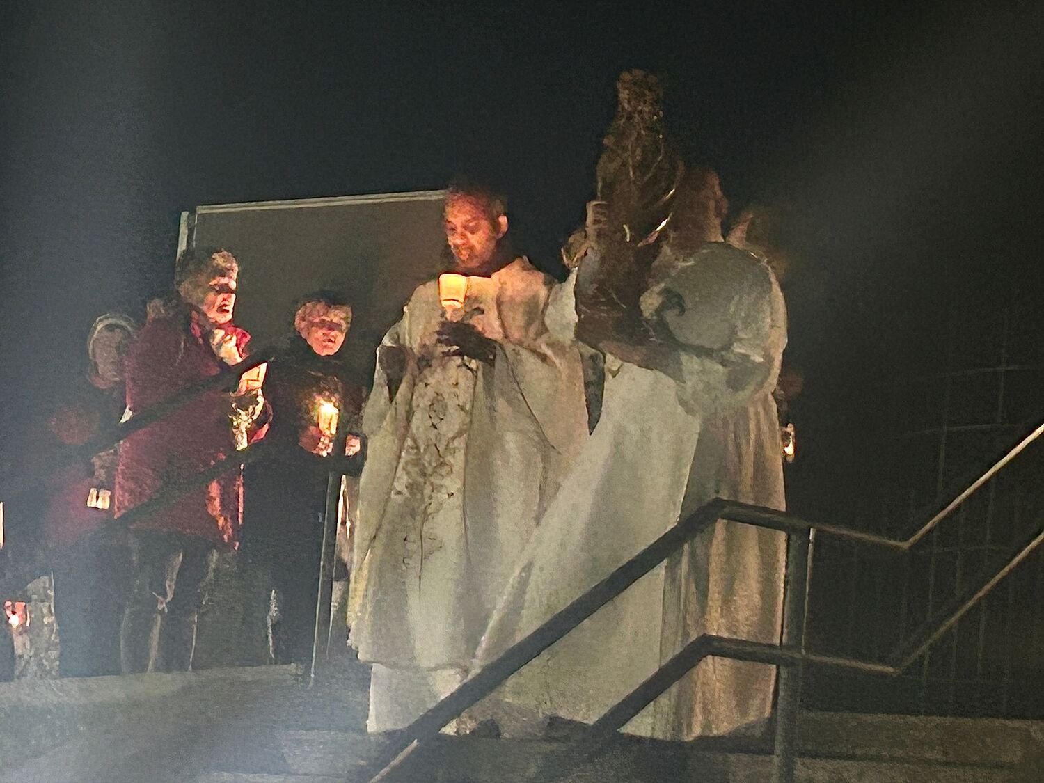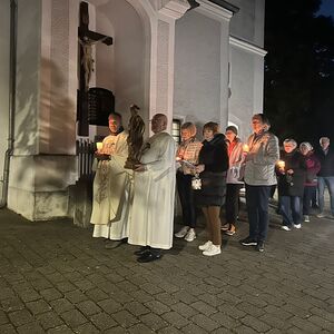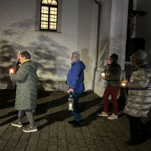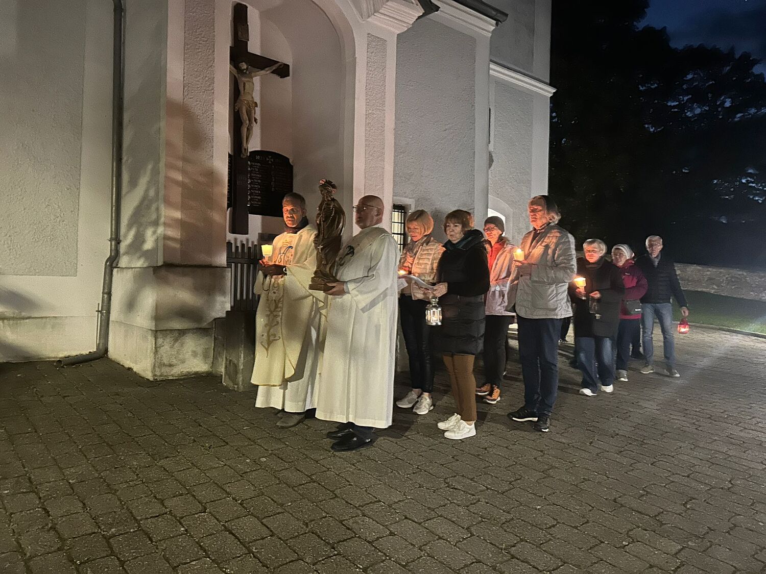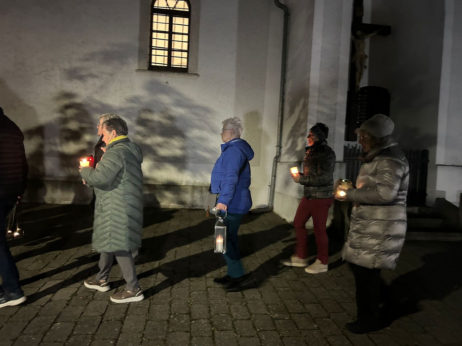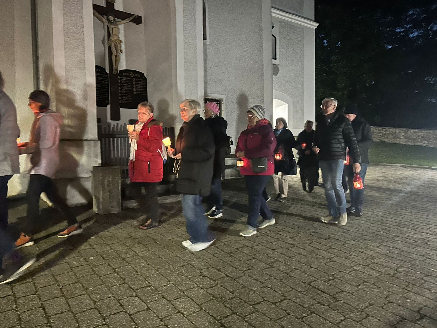 Ein besonderer Höhepunkt des Abends war die Lichterprozession um die Kirche: Betend, schweigend, mit Lichtern in den Händen und im Herzen, sind wir diesen Weg mit Maria gegangen – hin zu Christus, dem Licht der Welt.