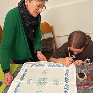 Besonders schön zu beobachten war das bunte Miteinander: Von Kindern und Jugendlichen bis hin zu erfahrenen Frauen waren alle Generationen vertreten. Gemeinsam lernten sie die Technik des Handdrucks kennen, deren Wurzeln ursprünglich im Orient liegen.